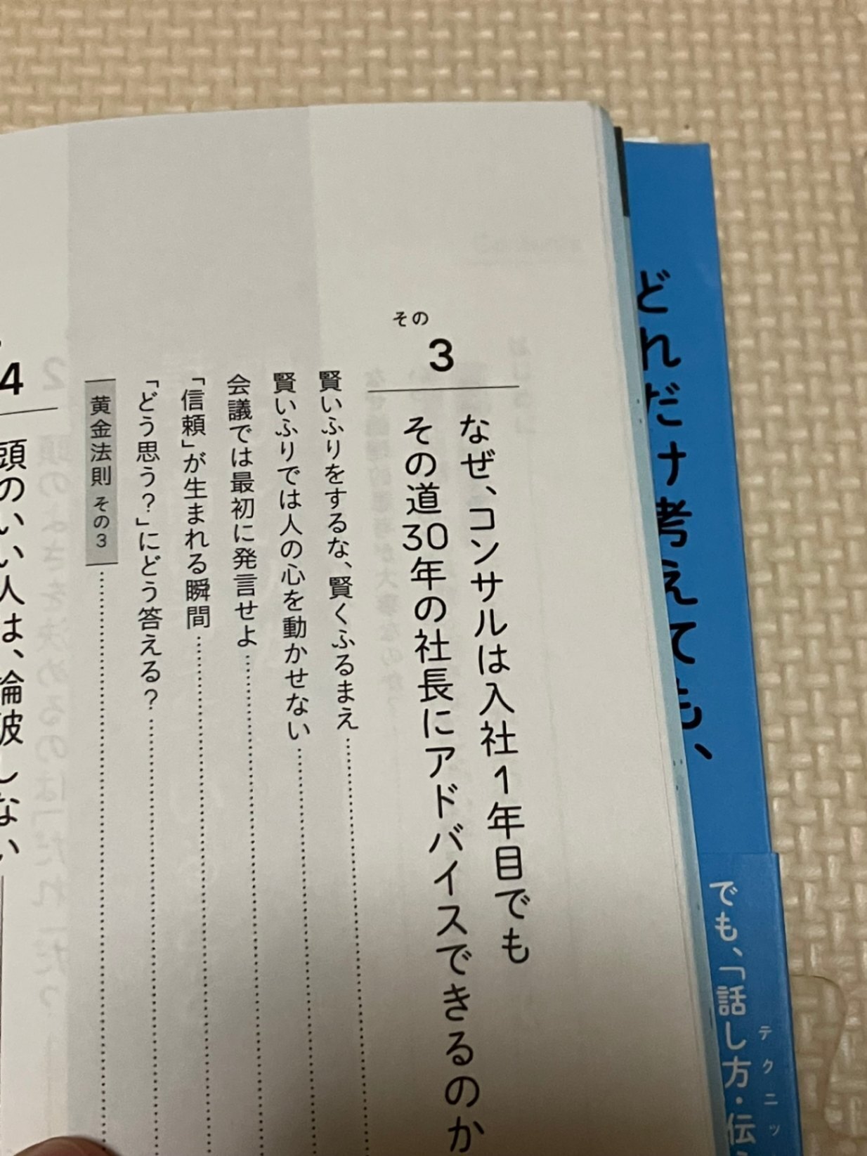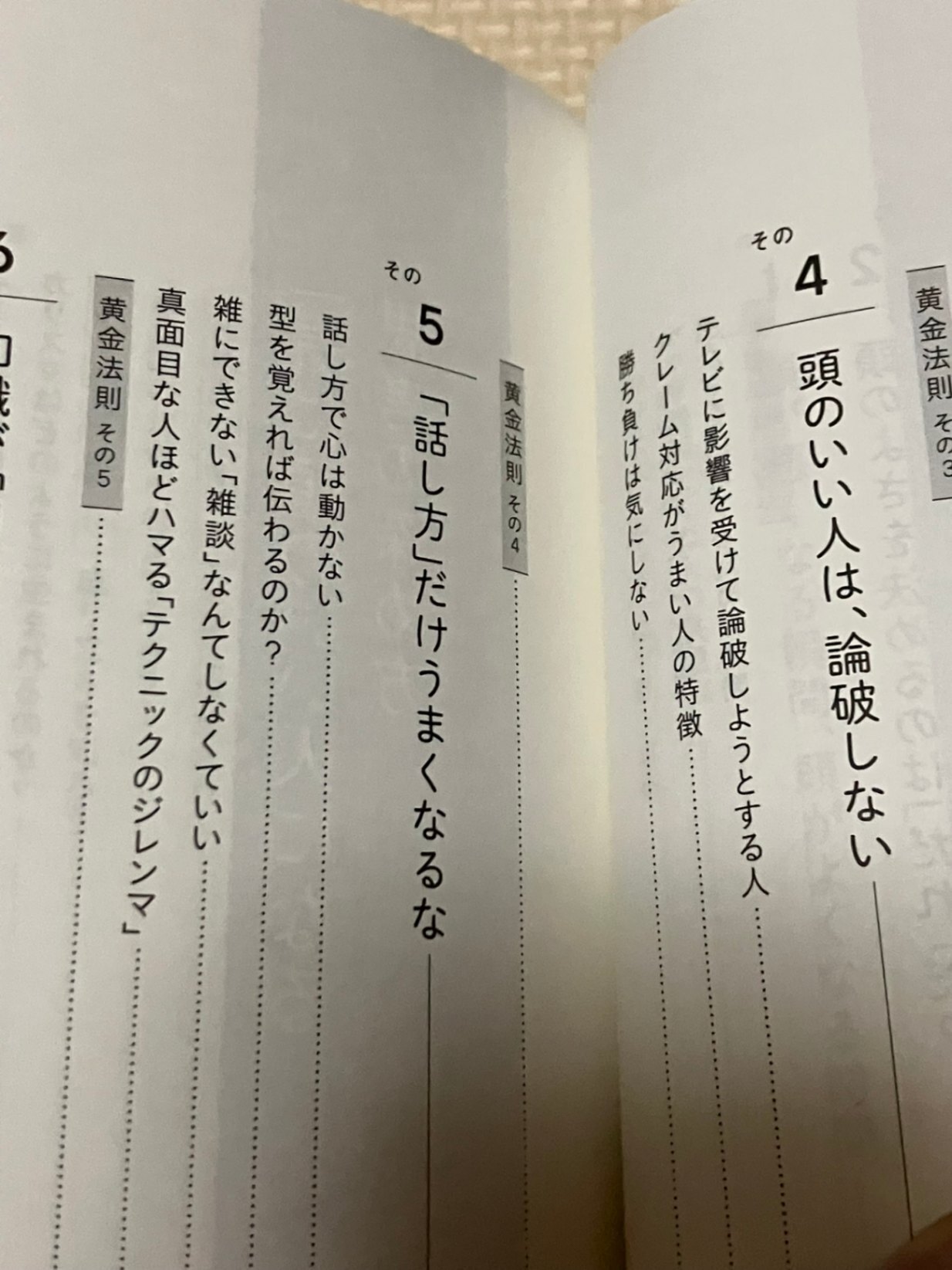 ・そのための7つの黄金法則と、客観視・整理・傾聴・質問・言語化といった5つの思考法を通じて、誰でも仕事や人間関係で「考えて話す人」になれる具体的なトレーニングを示している。