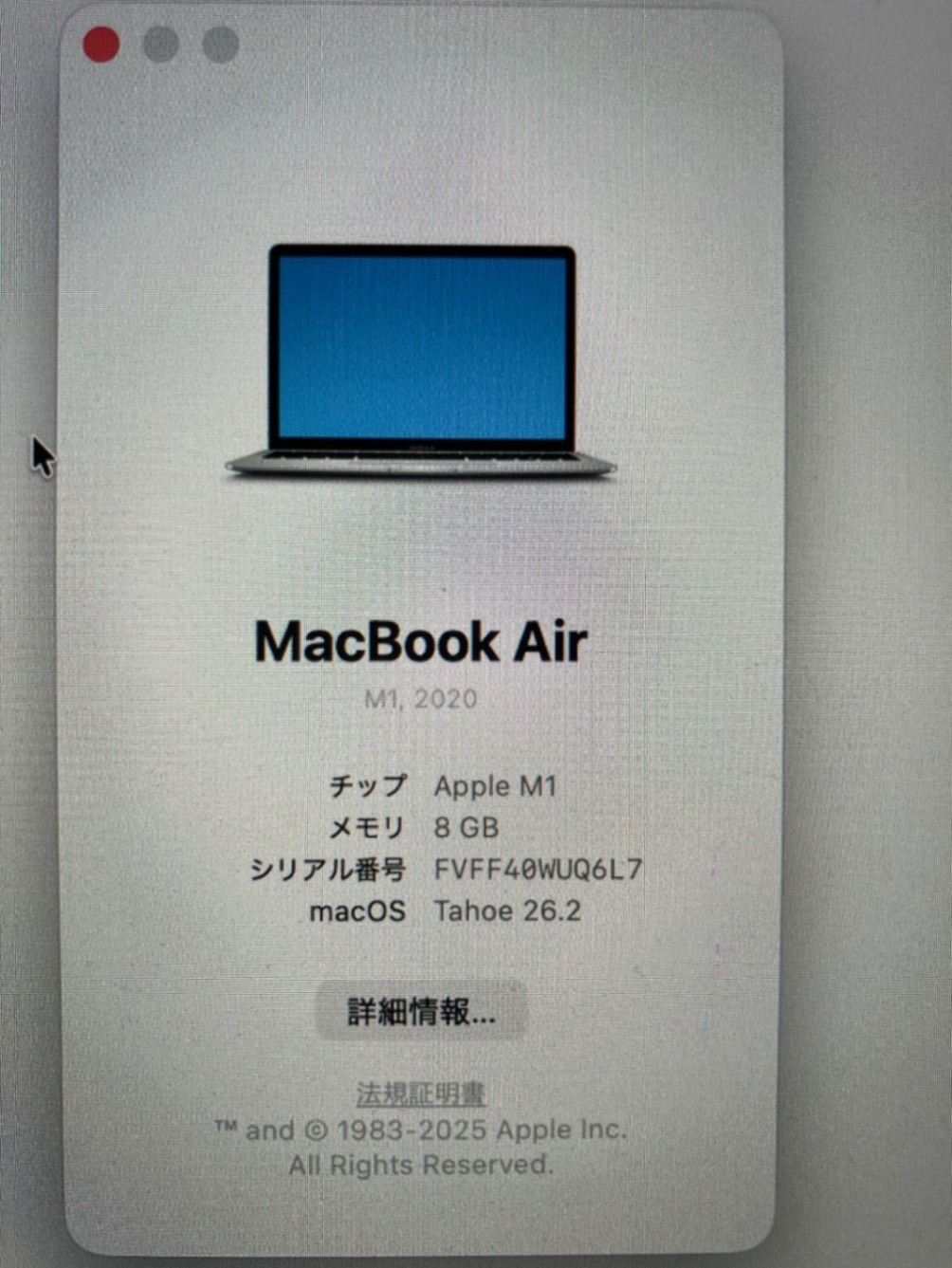 Apple MacBook Air M1 (2020) 8GBメモリ 256GB SSD シルバー