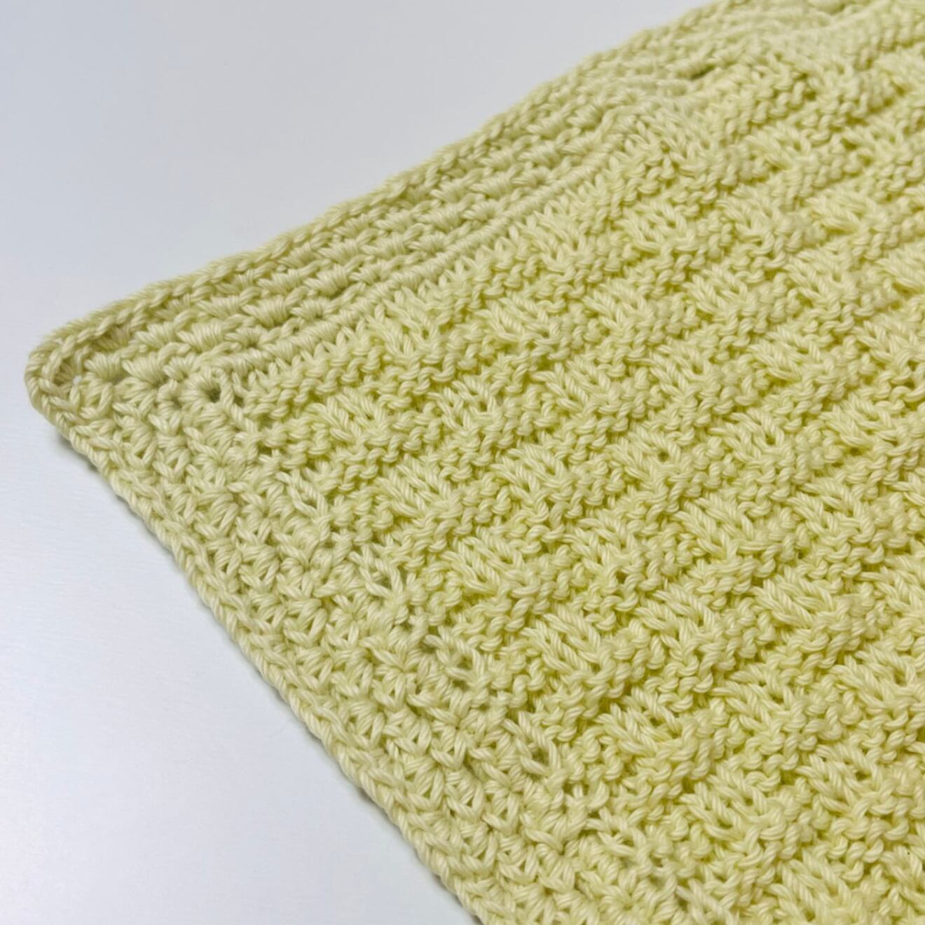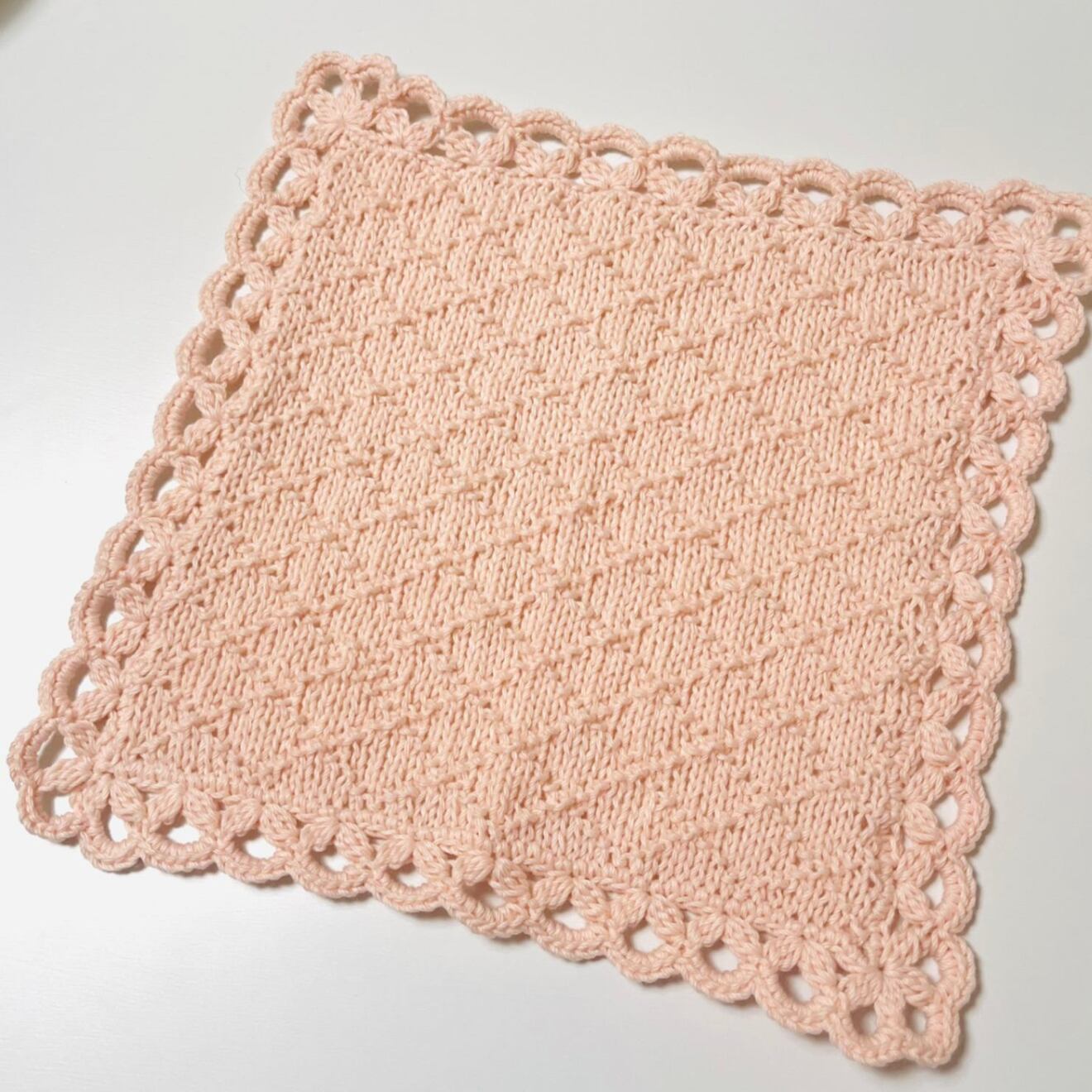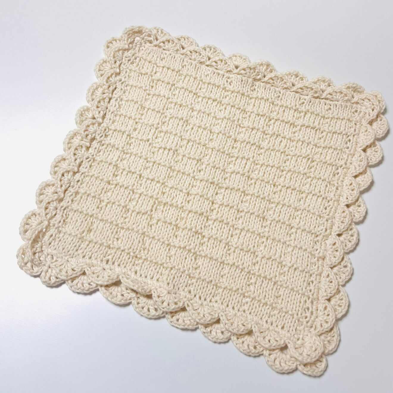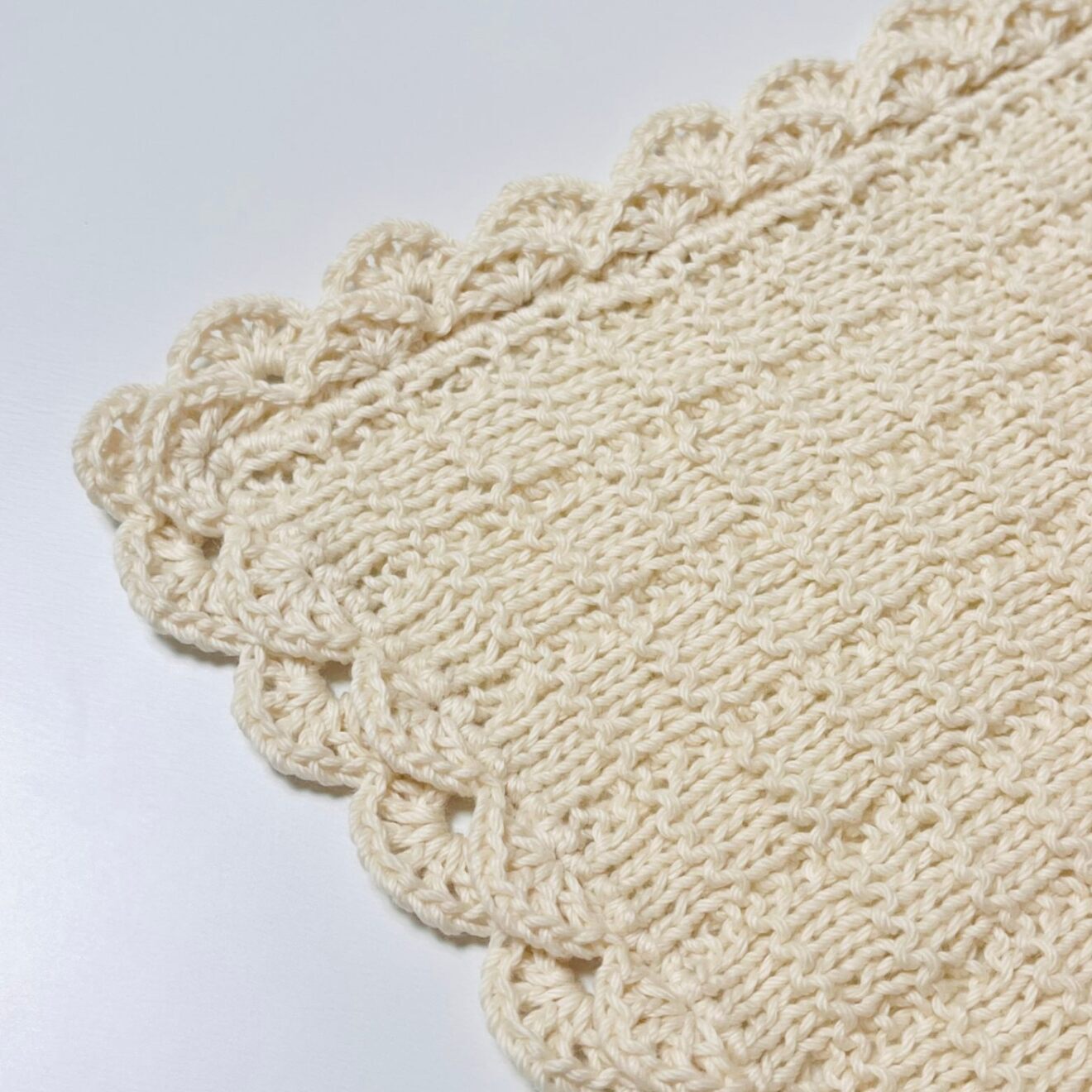かぎ針編みと棒針編みを組み合わせて丁寧に編み上げたニッタオルです。