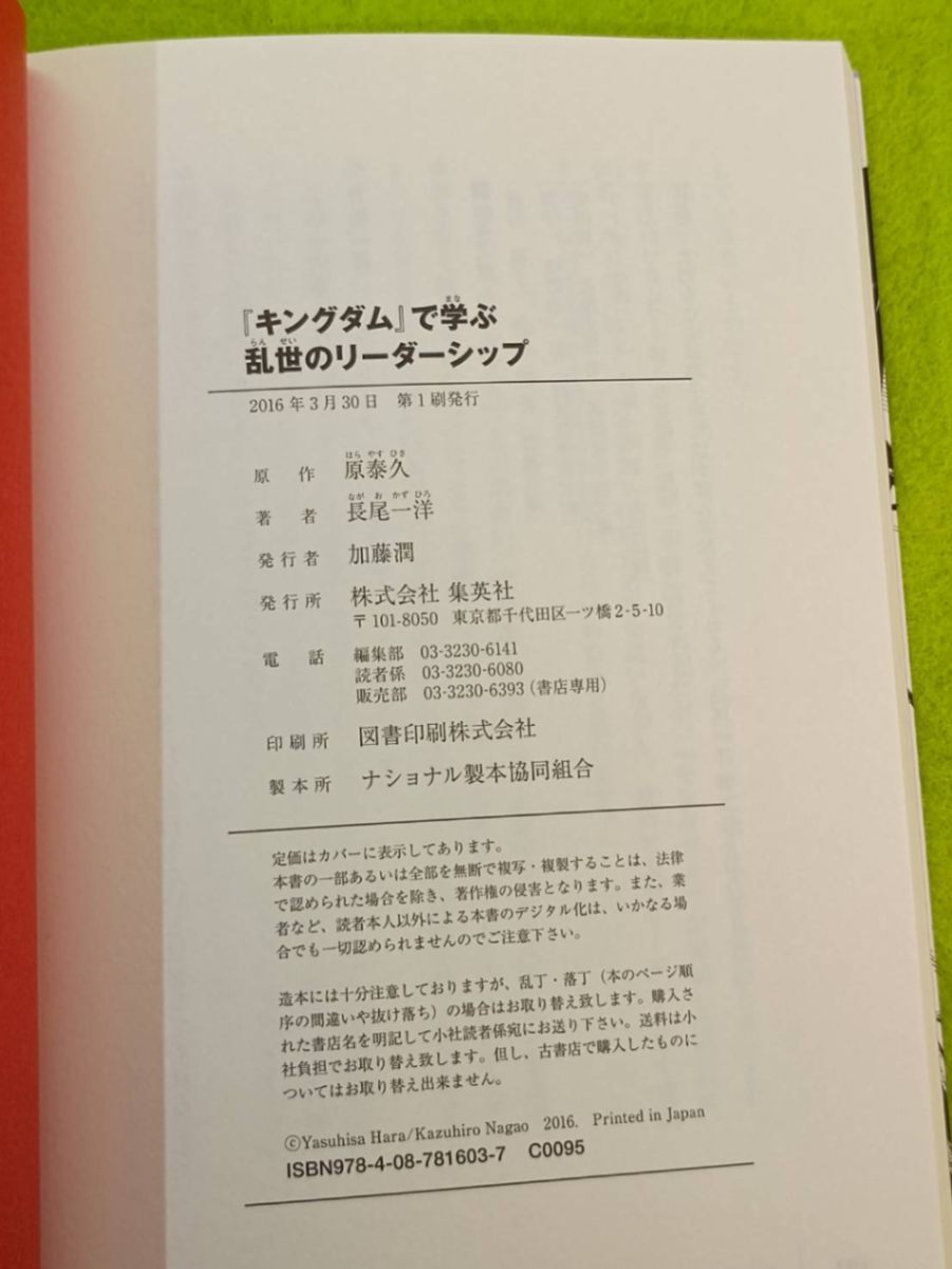 「キングダムで学ぶ 乱世のリーダーシップ」という本になります。