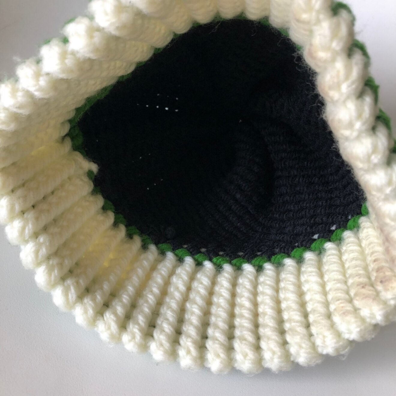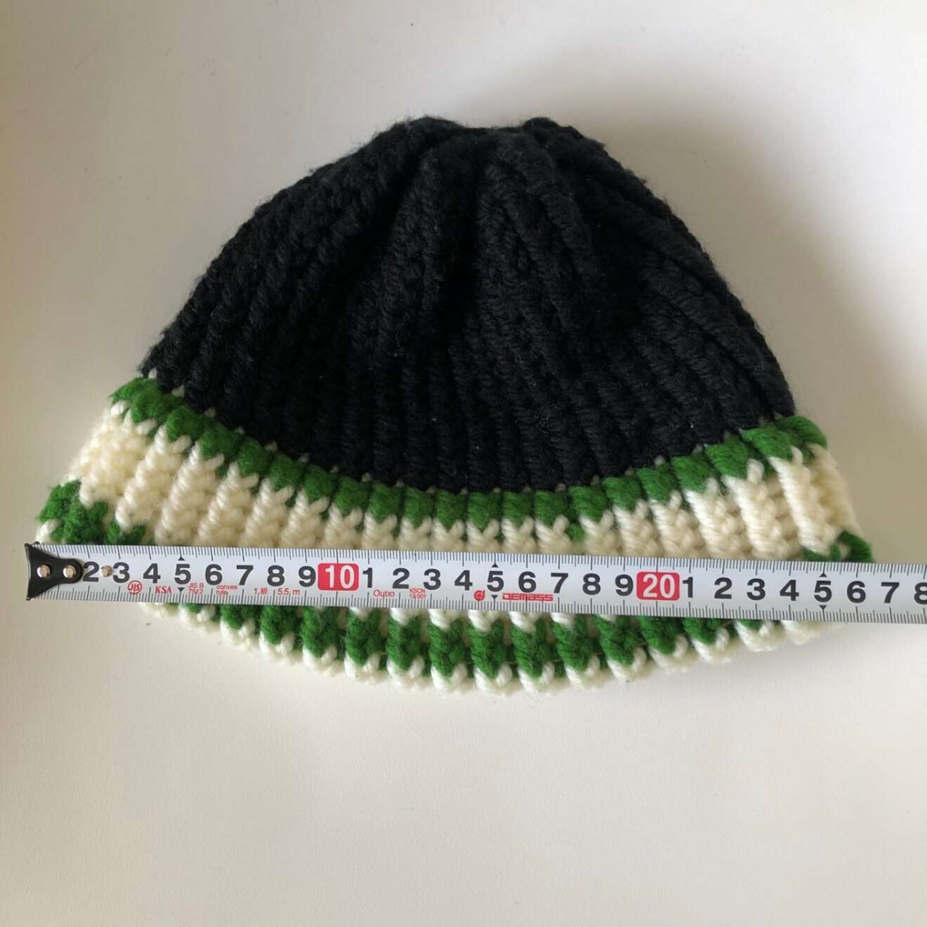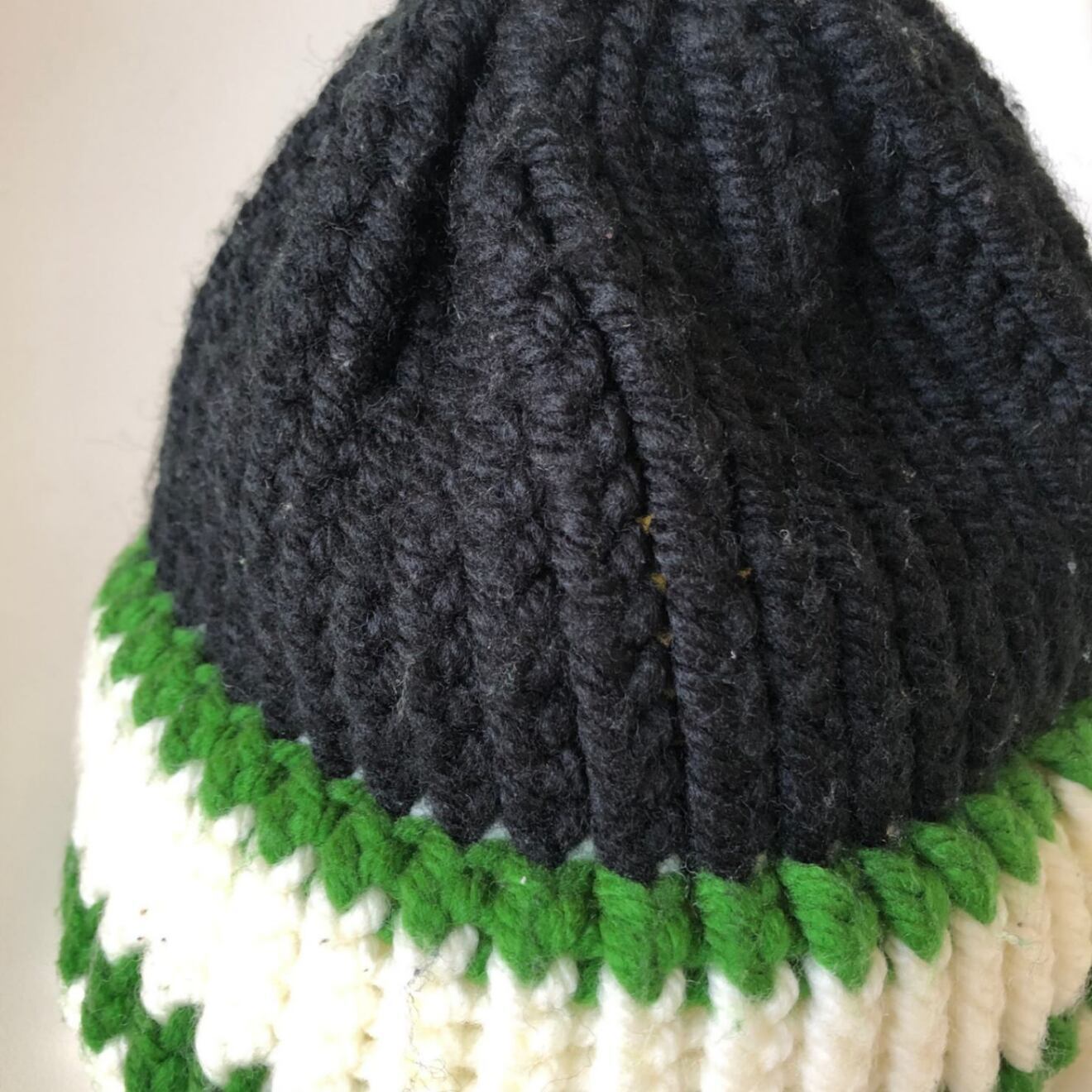 【ハンドメイド】ニット帽 ブラック グリーン ホワイト
