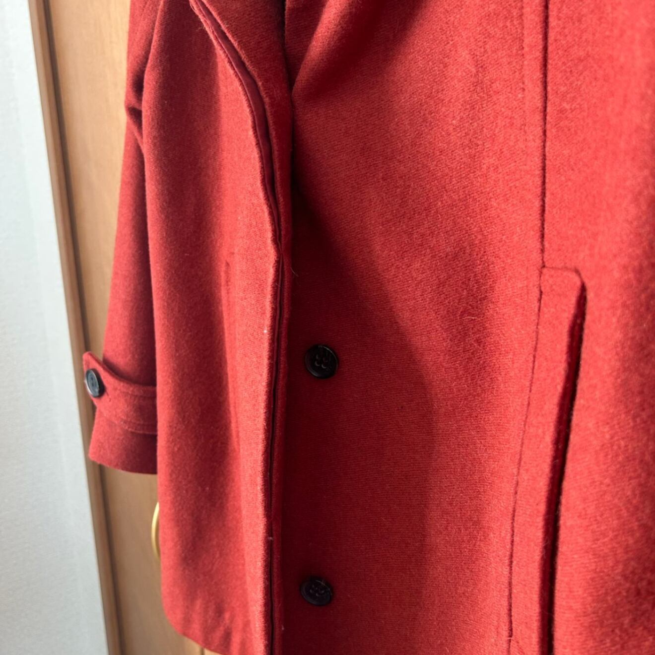 ボタンで留めるタイプのコートです。