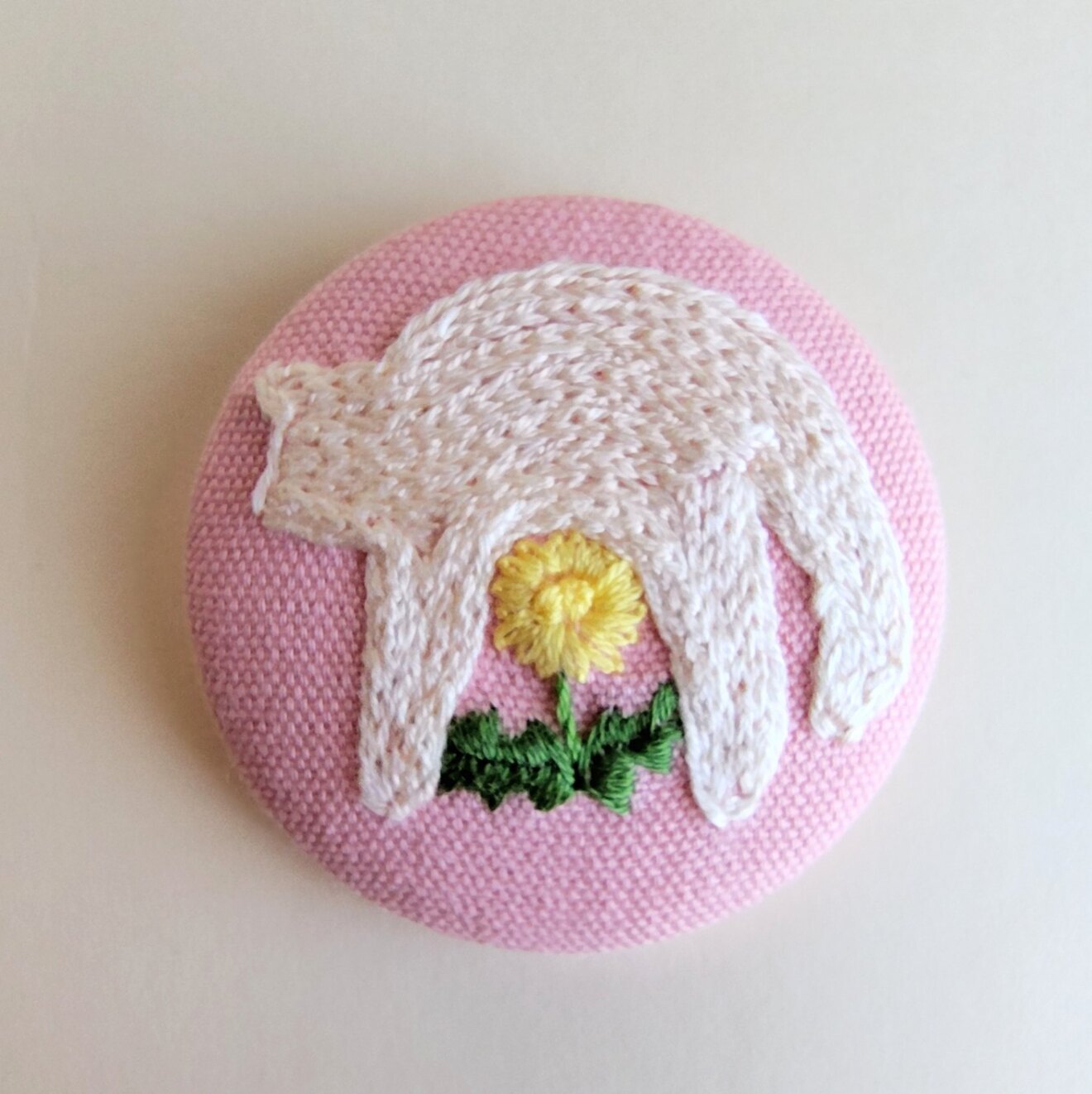 【素材違い・テスト版】伸びをするネコの手刺繍ブローチ*たんぽぽ(ピンク)
