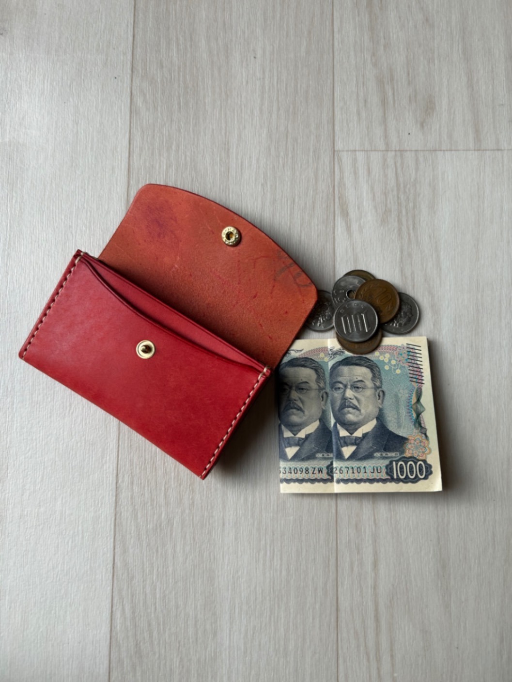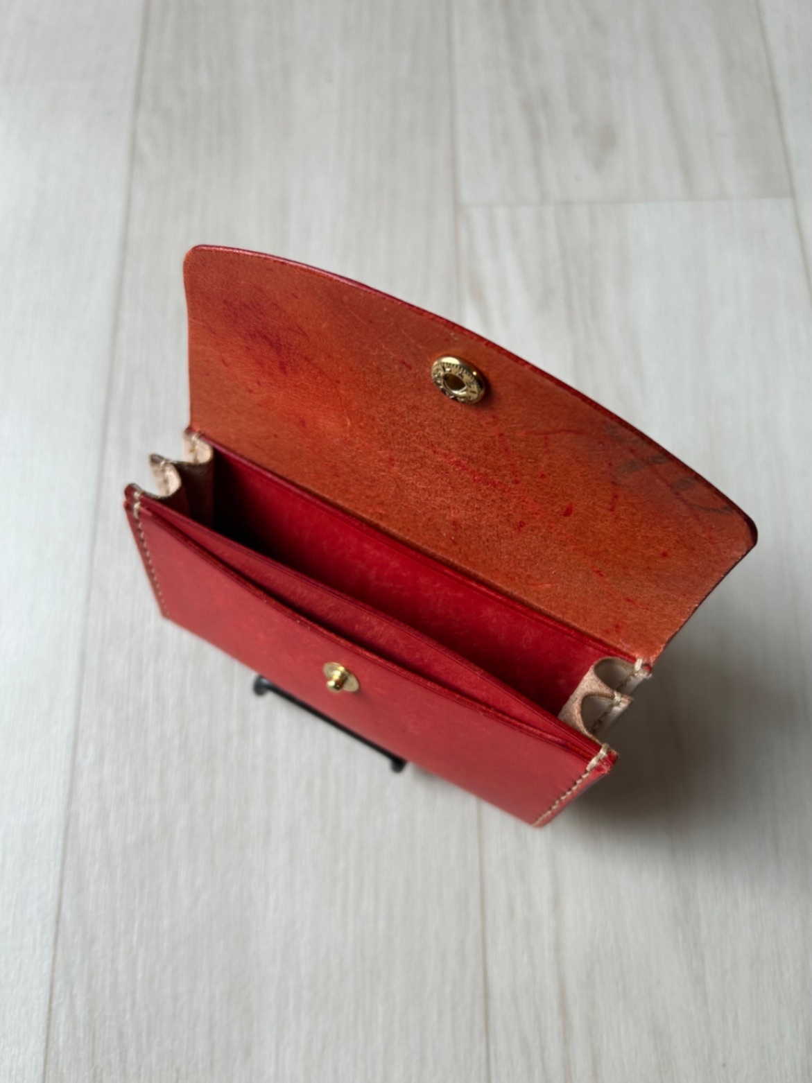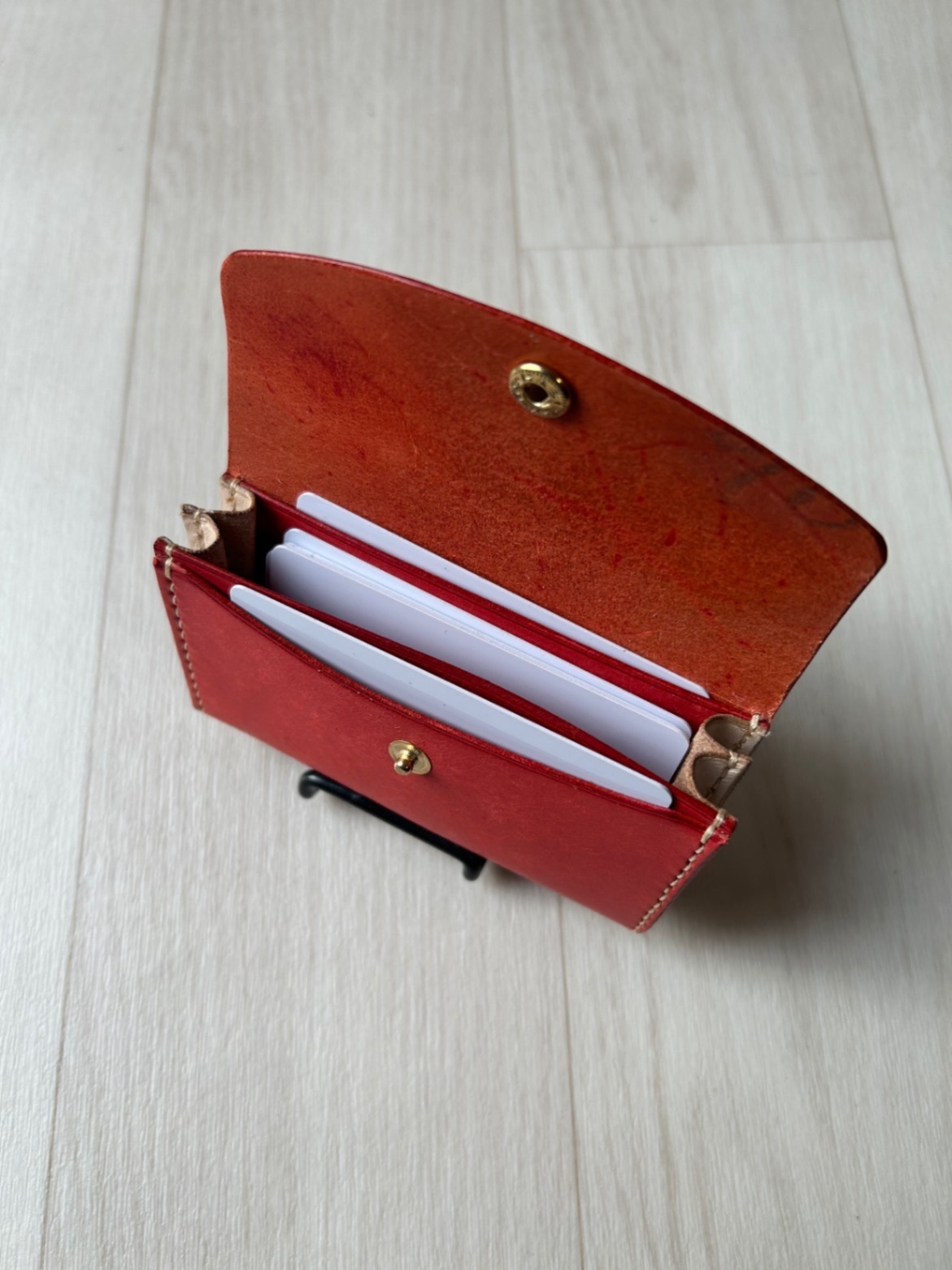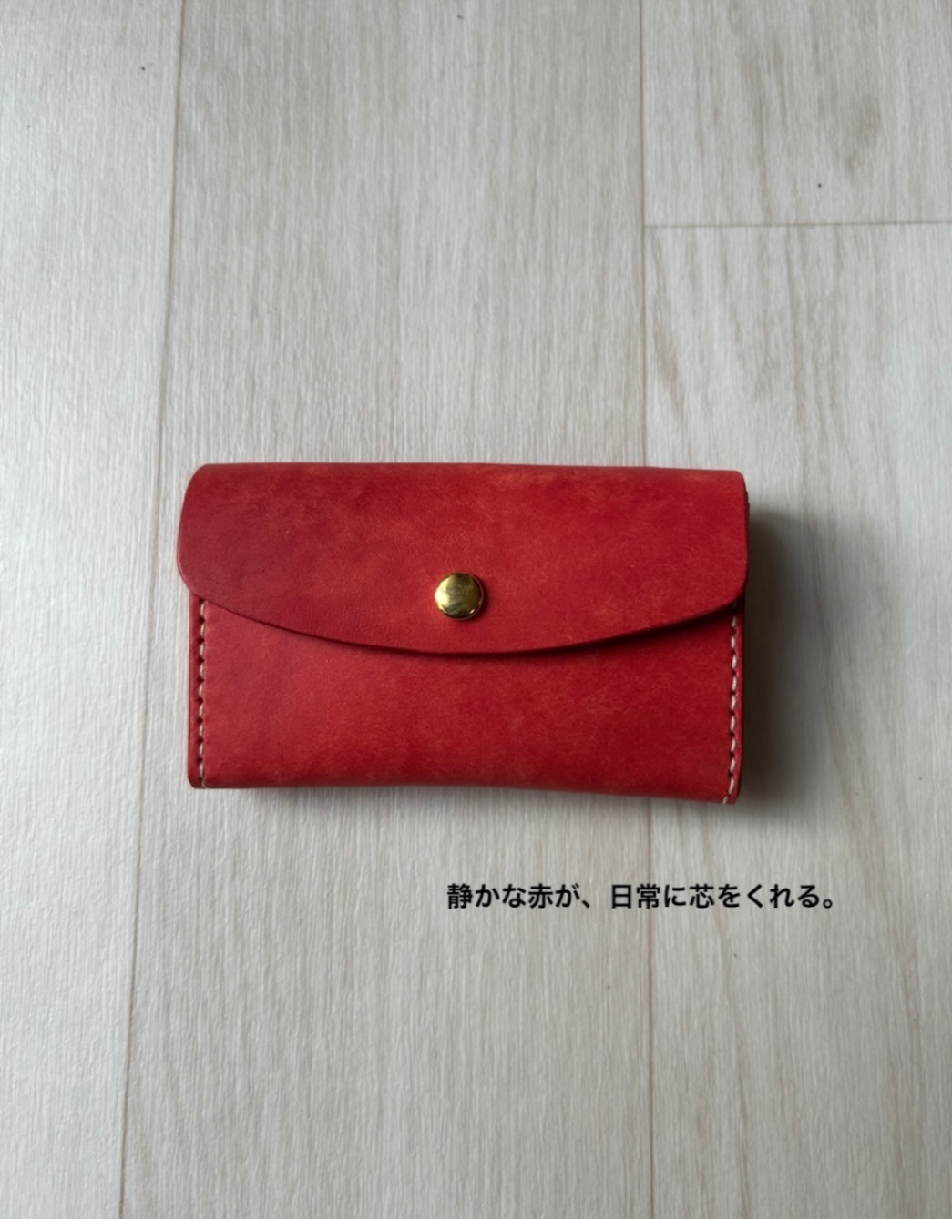 ミニ財布・カードケース|赤(イタリアンレザー)|手縫い【凛革シリーズ】