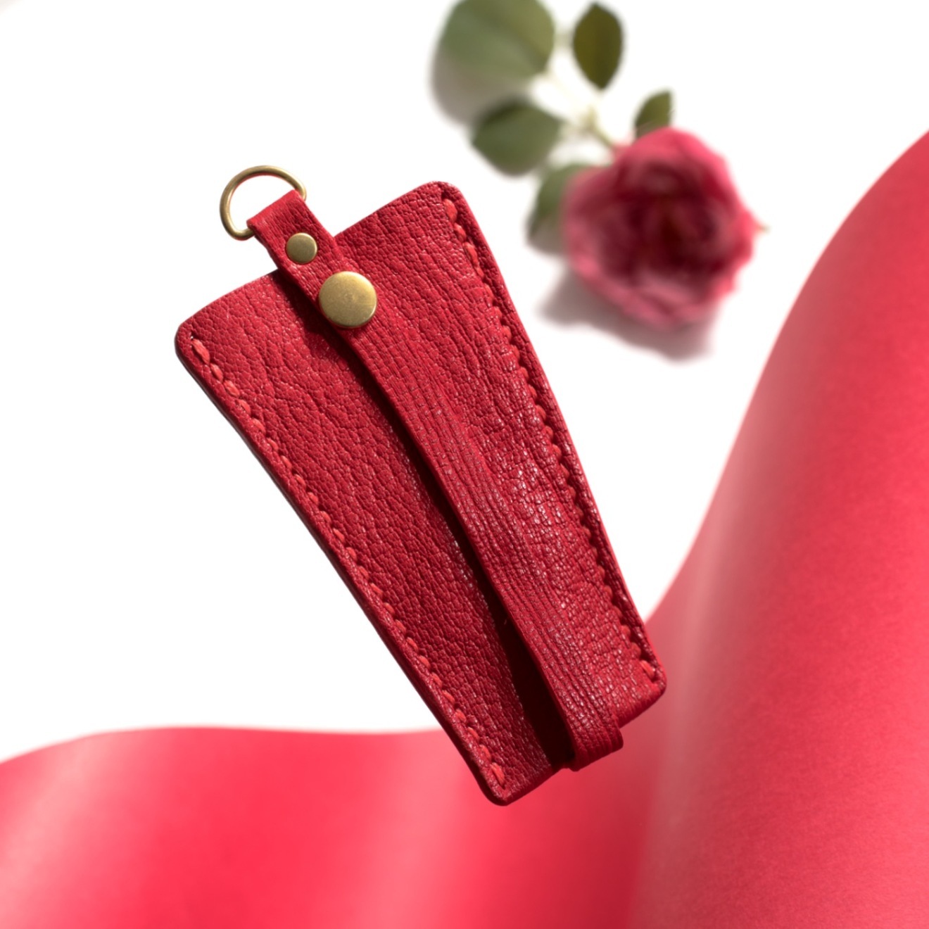このベルト式キーケースには、ハンドメイドでていねいに作られたストーリーがあります。