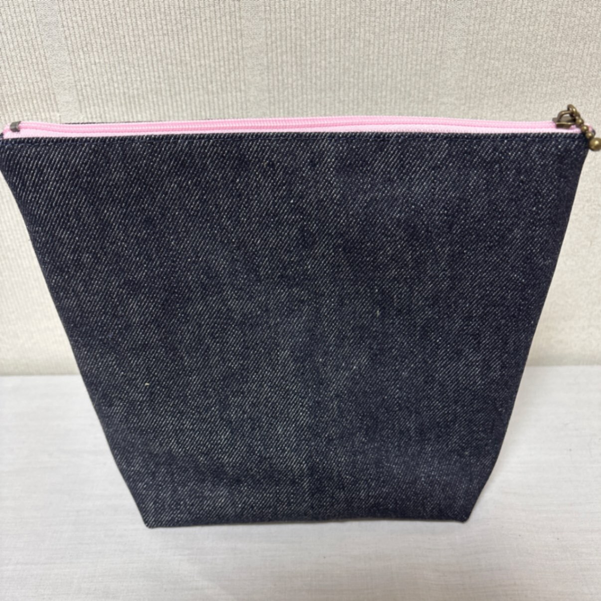 インド刺繍リボンをデニム生地に合わせたハンドメイドポーチです。