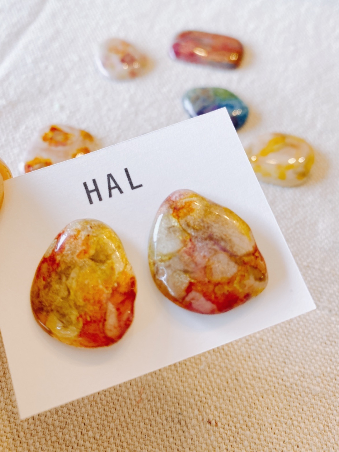 ハンドメイドアクセサリー アルコールインクアート ピアス イヤリング 個性的
