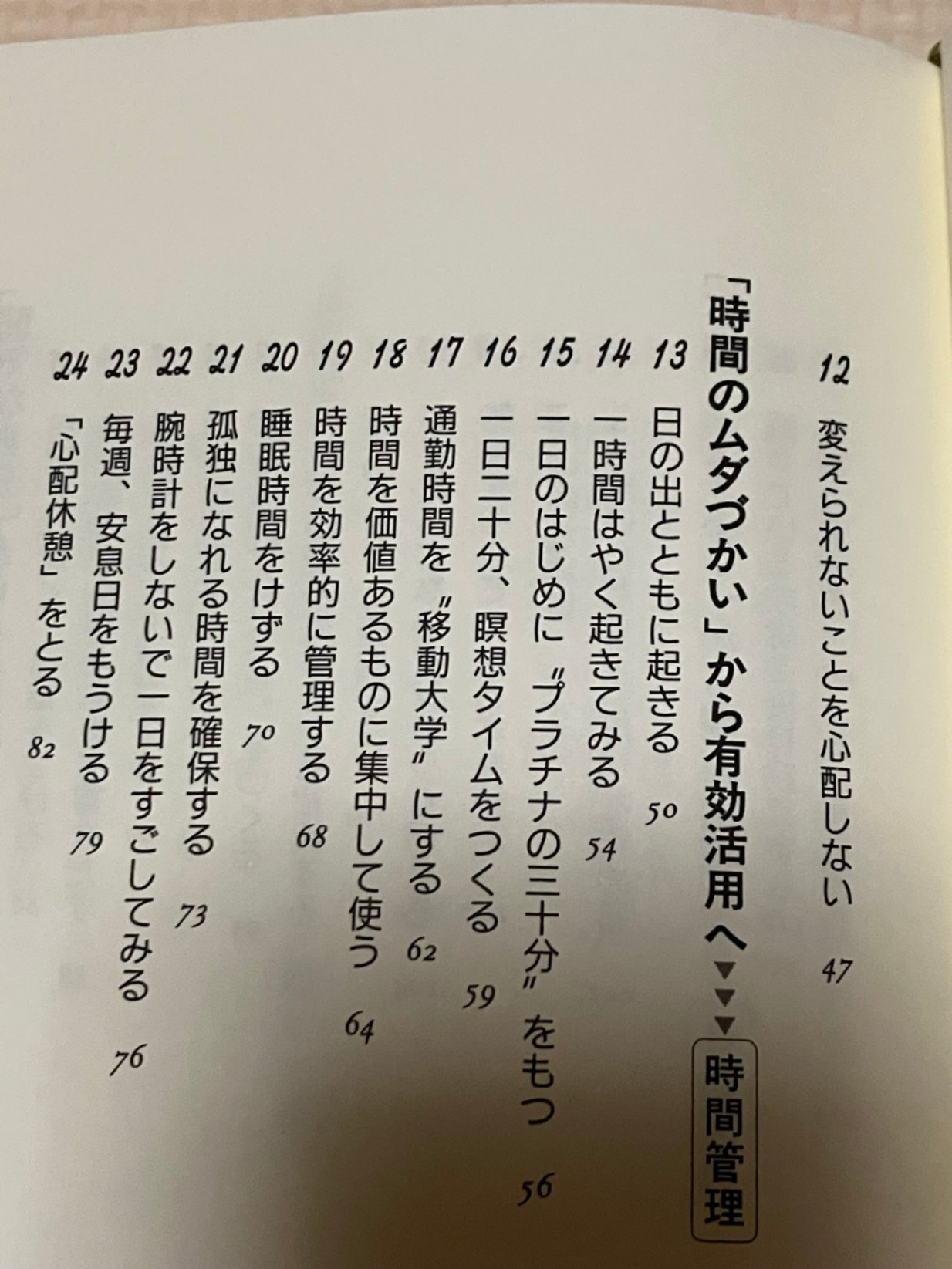 ・目標設定、時間管理、心配グセの手放し、人間関係、リーダーシップ、自己成長などについて、短いエピソードと格言形式で「行動に移しやすい」101の智慧を紹介している。