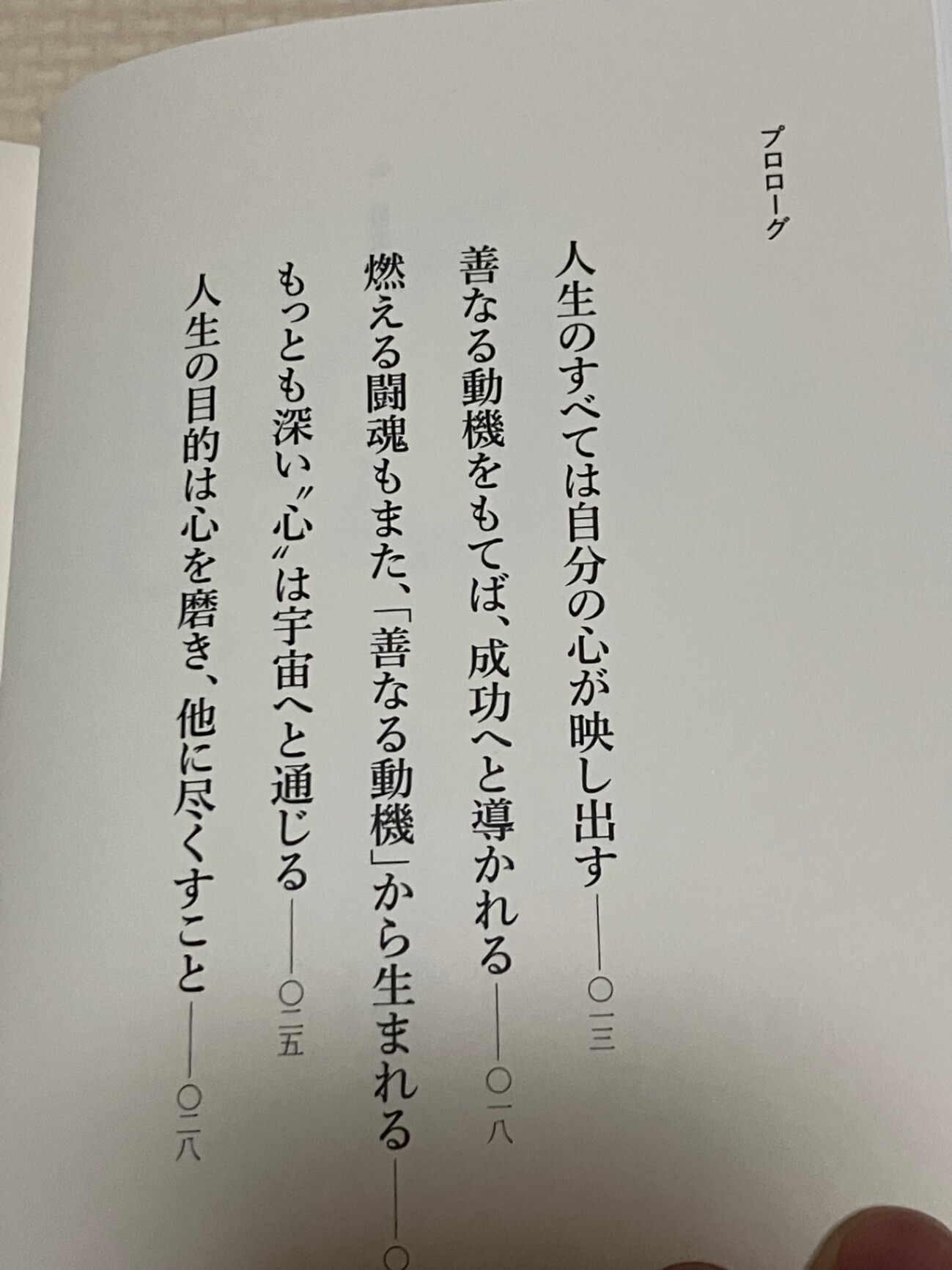 ・「善なる動機をもつ」「利他の心で生きる」「正しいことを貫く」「美しい心根を育てる」といったテーマを軸に、仕事・人間関係・逆境への向き合い方を、具体的なエピソードとともに示している。