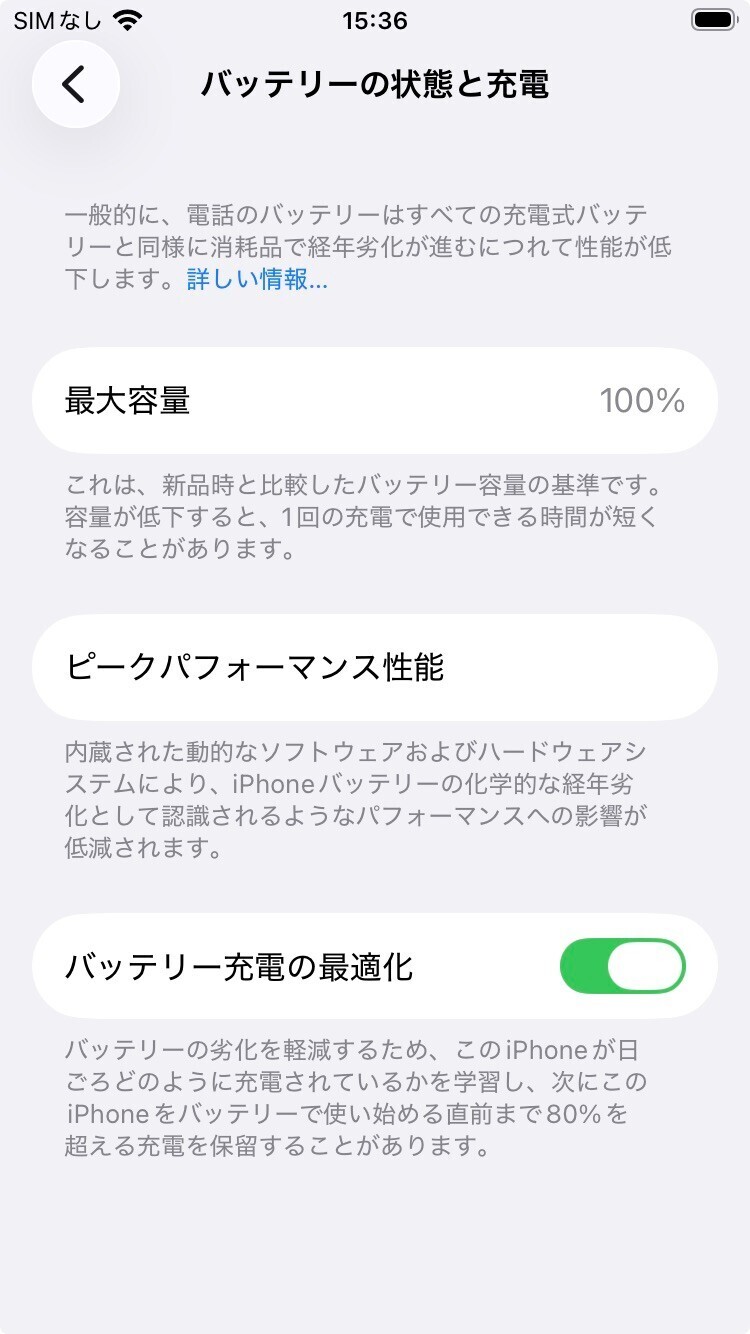 ・バッテリー最大容量、充放電回数は撮影時点の状態のため時間経過により変動ございます。