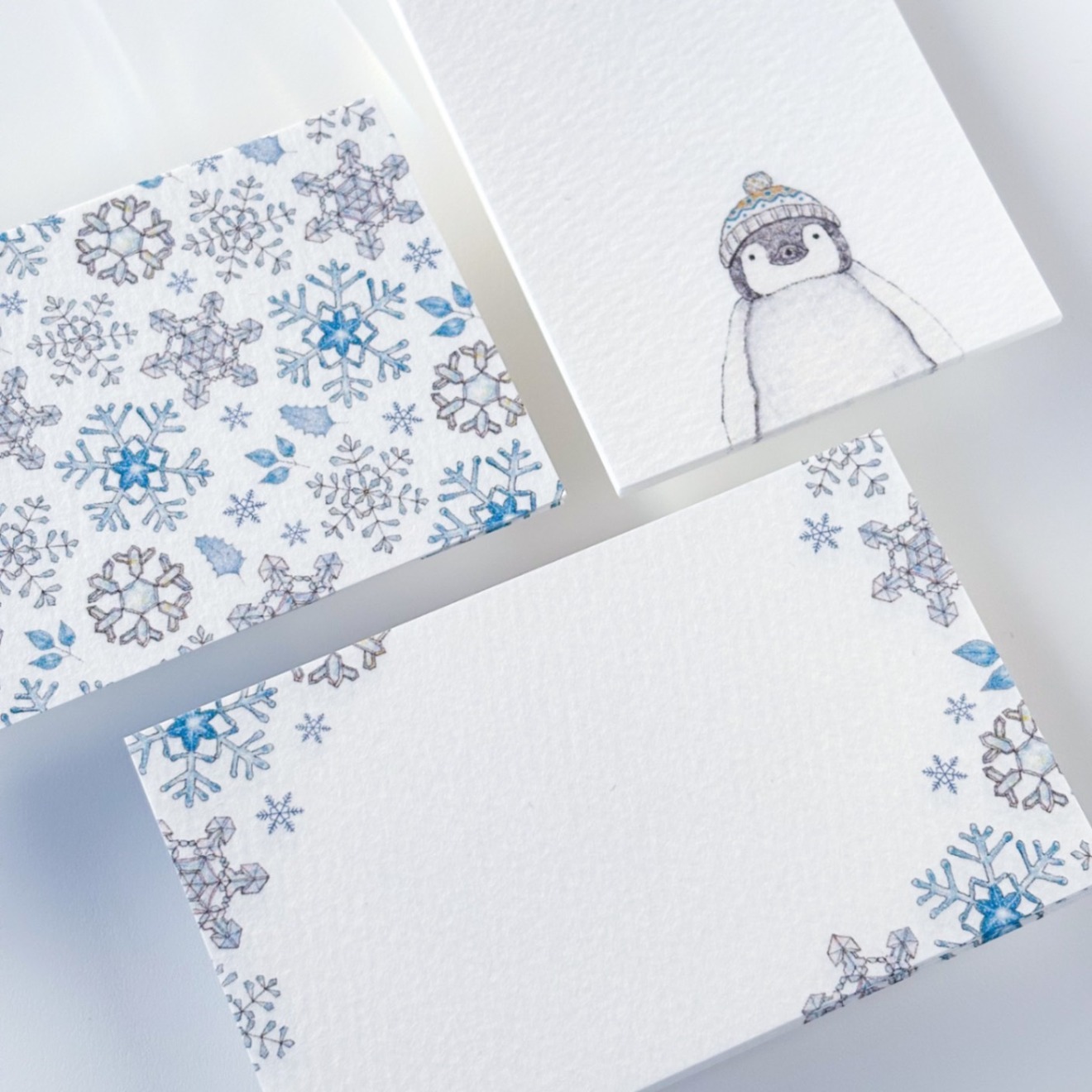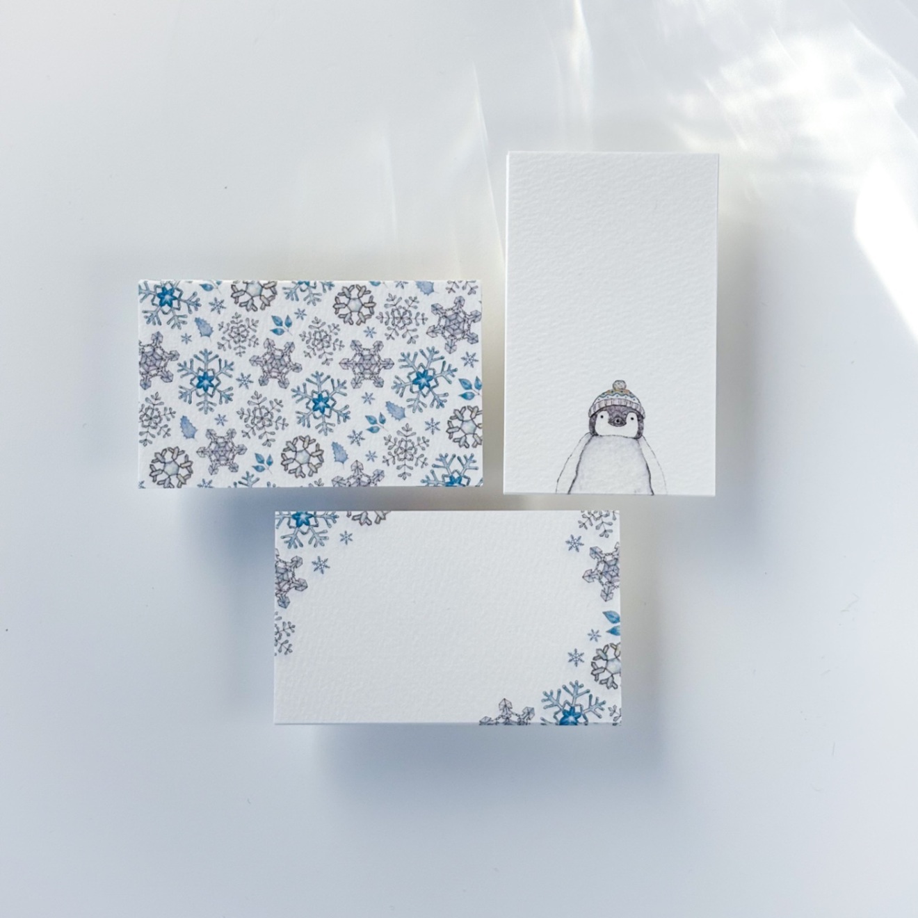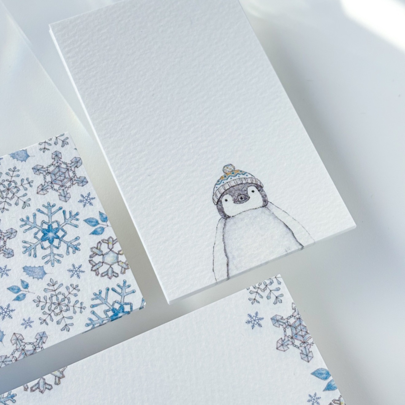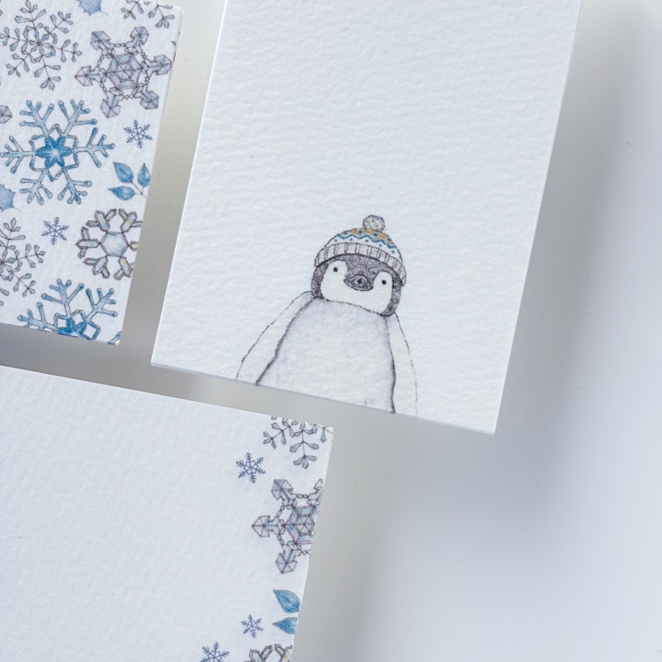 うつくしい雪の結晶とニットの帽子をかぶったペンギンさん🐧