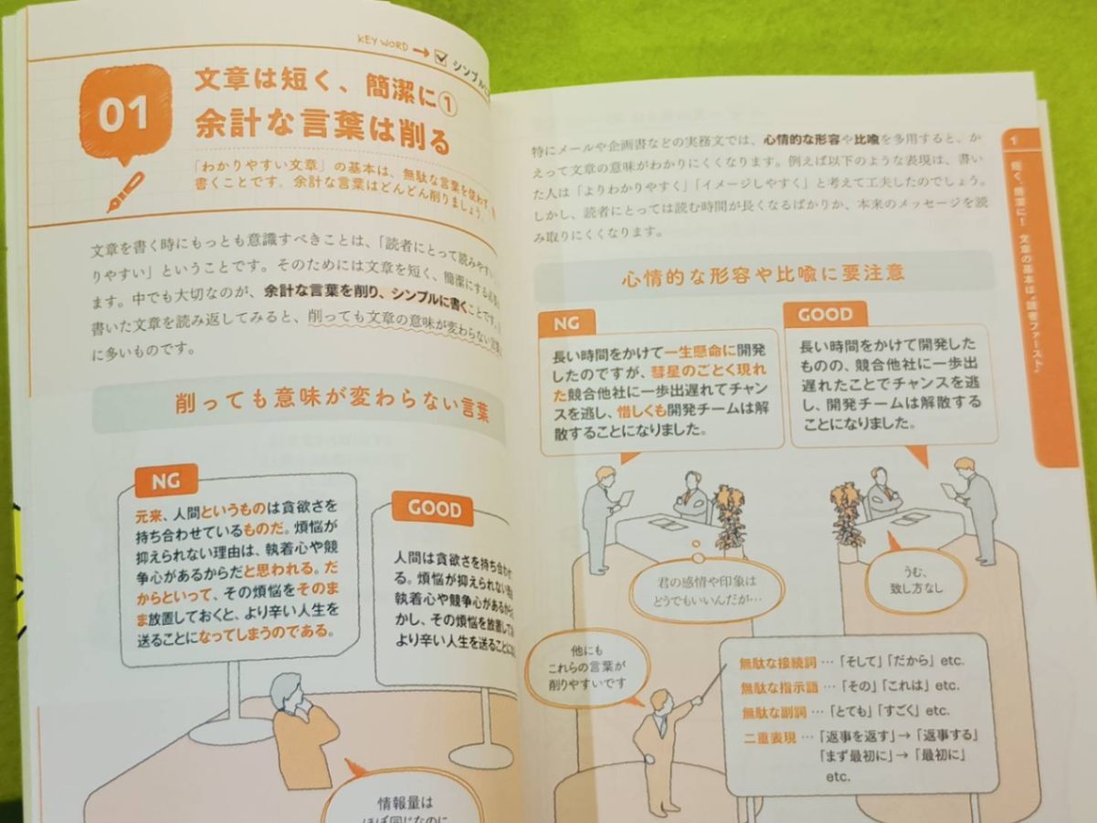 ビジネス文章を書くための基本的なテクニックを、イラストを使ってわかりやすく解説している「伝わる文章術 見るだけノート」です。