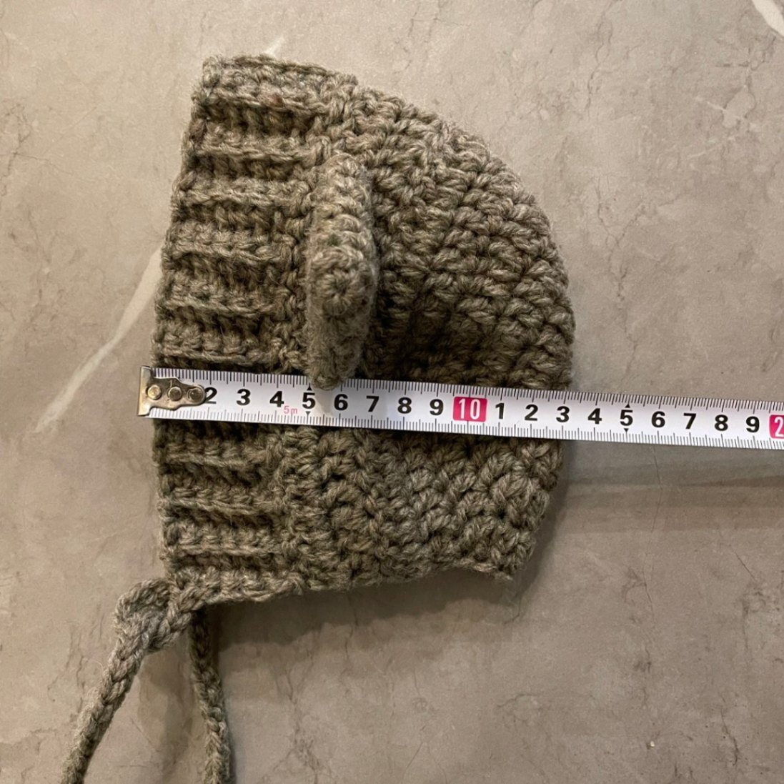 それぞれリボンで結ぶタイプで、サイズ調節もしやすいかと思います。伸縮性のある編み方をしています。