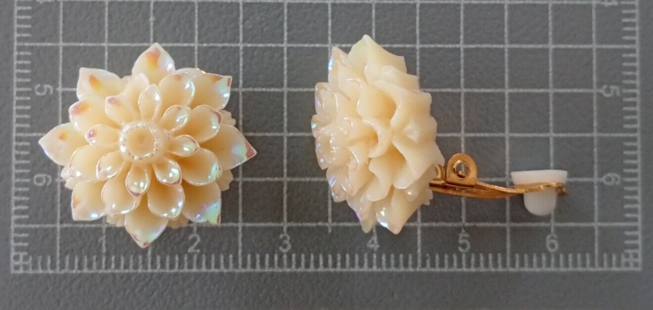 【21】クリップイヤリング◇オーロラホワイトフラワー◇ゴールド