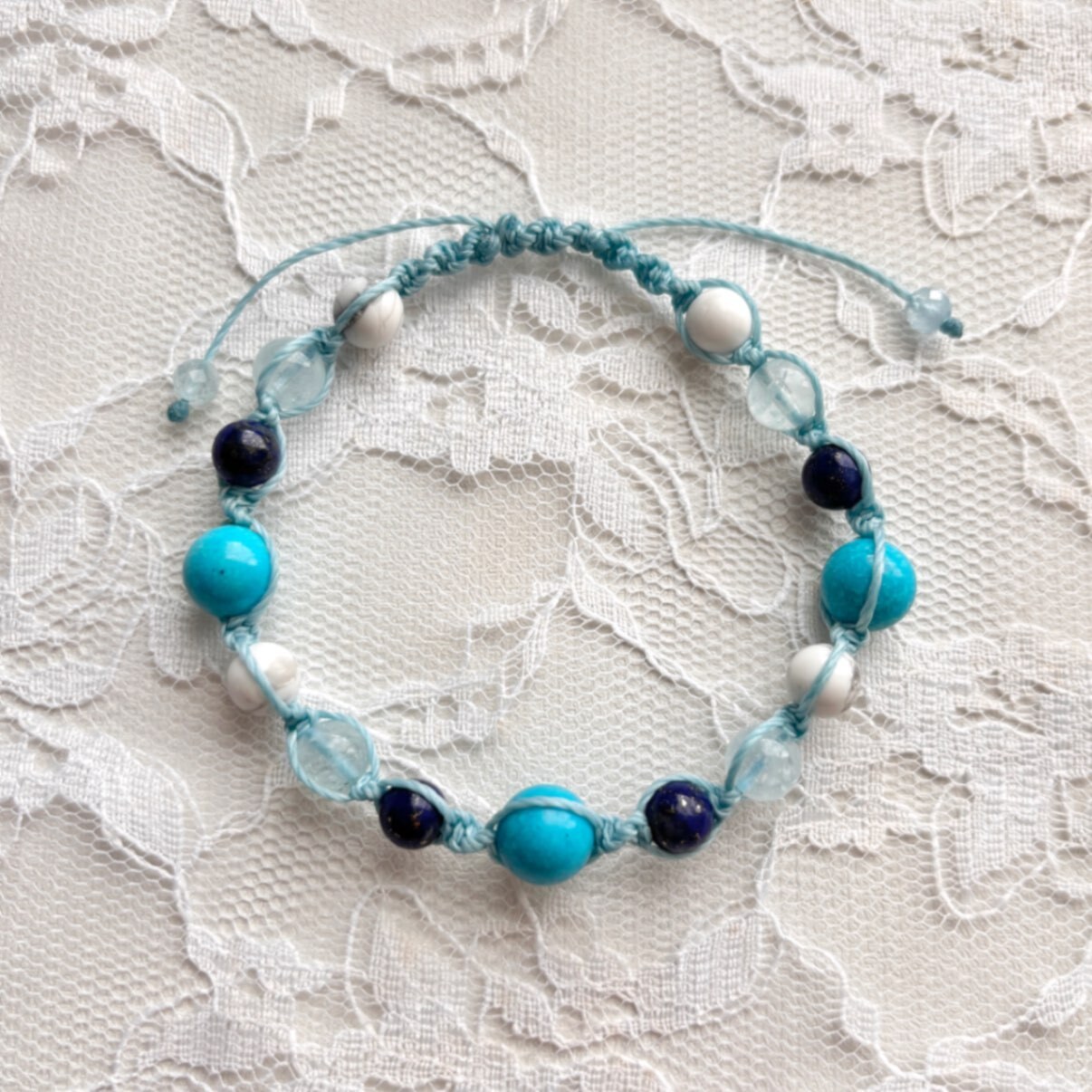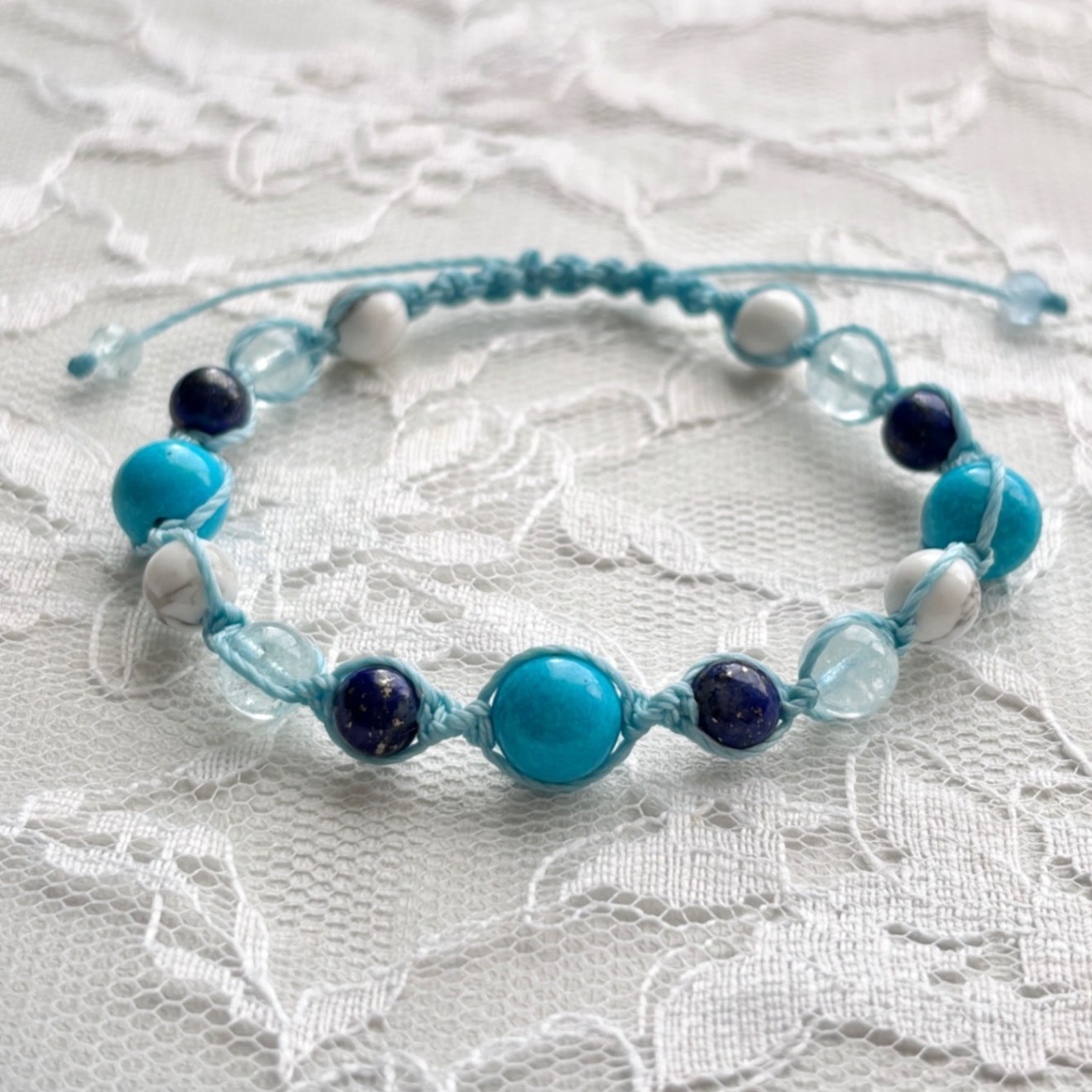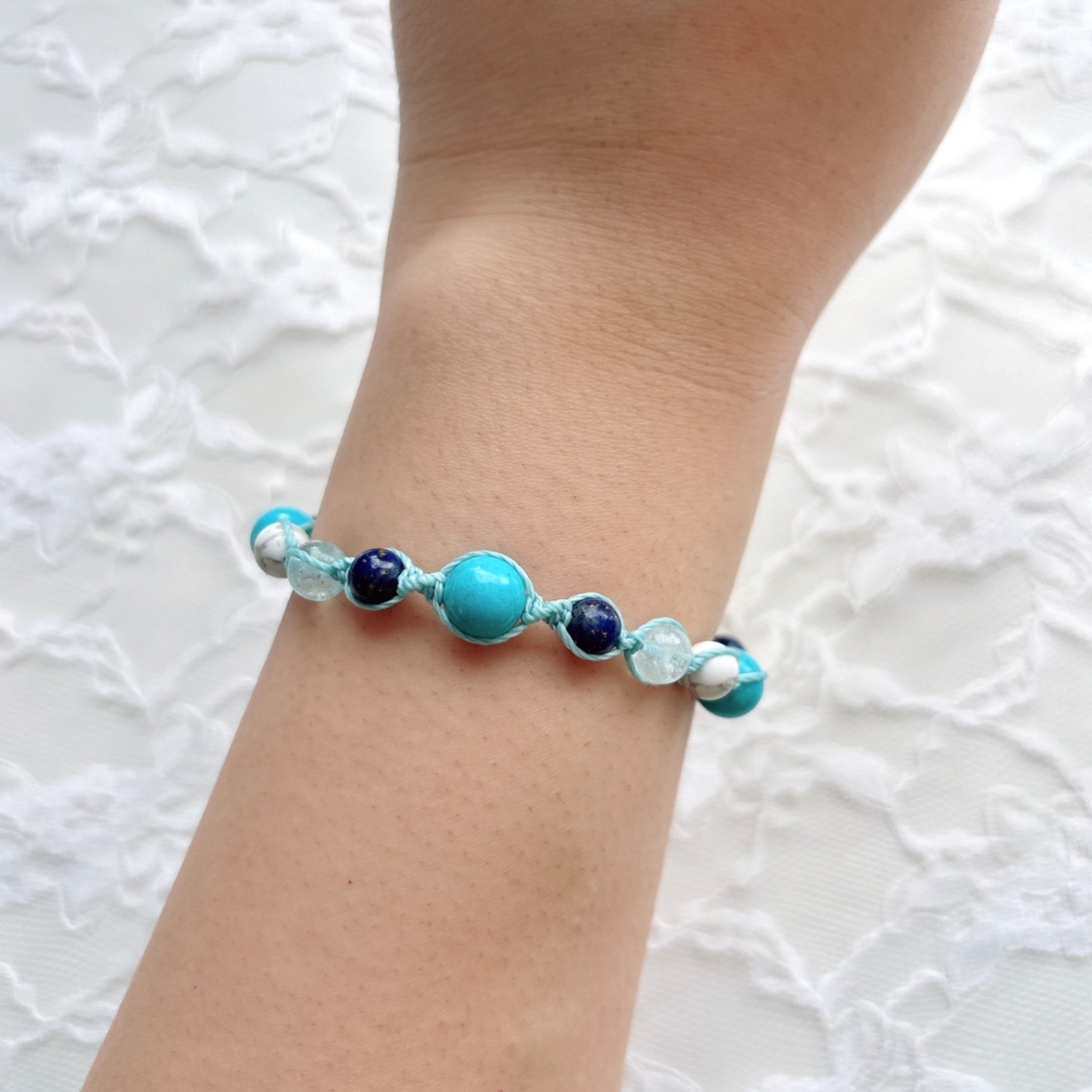 【ハンドメイド】ターコイズ ラピスラズリ ハウライト 天然石 マクラメ編み ブレスレット