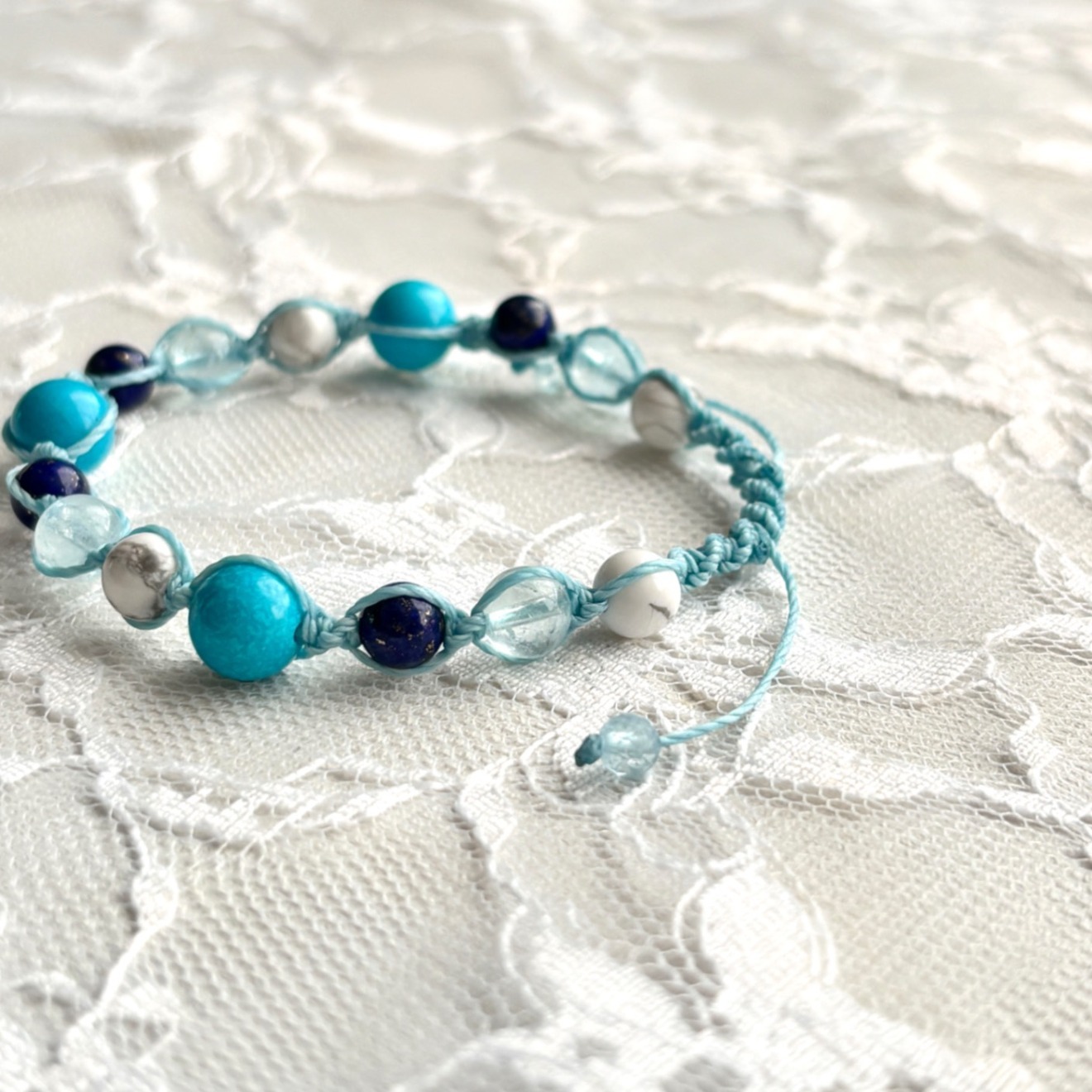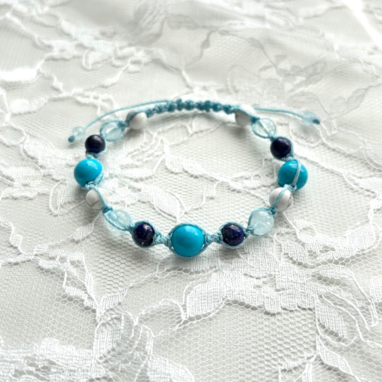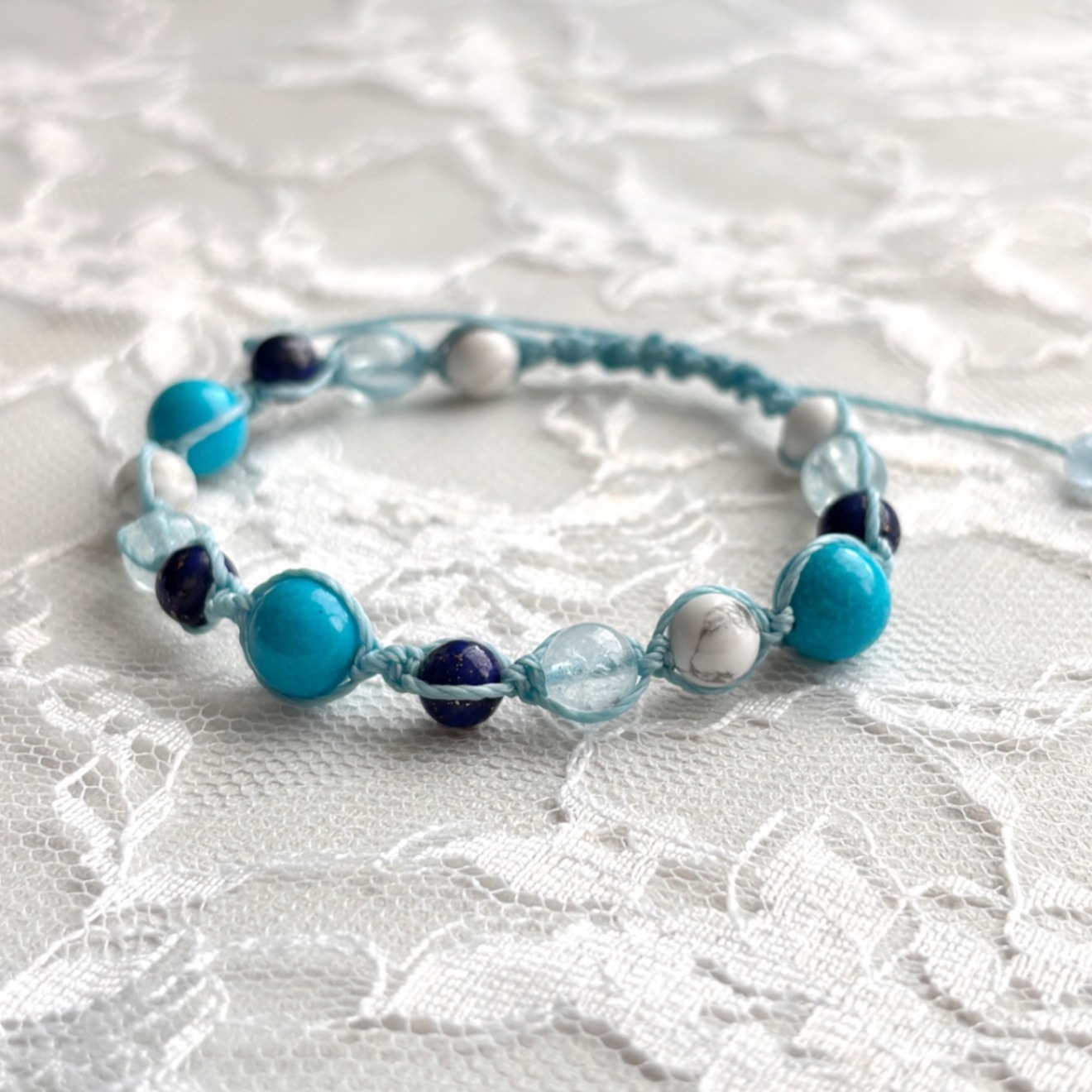 【ハンドメイド】ターコイズ ラピスラズリ ハウライト 天然石 マクラメ編み ブレスレット