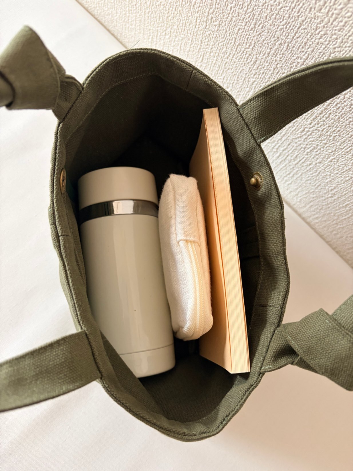 ※写真では水筒・文庫本を入れた状態を掲載しています