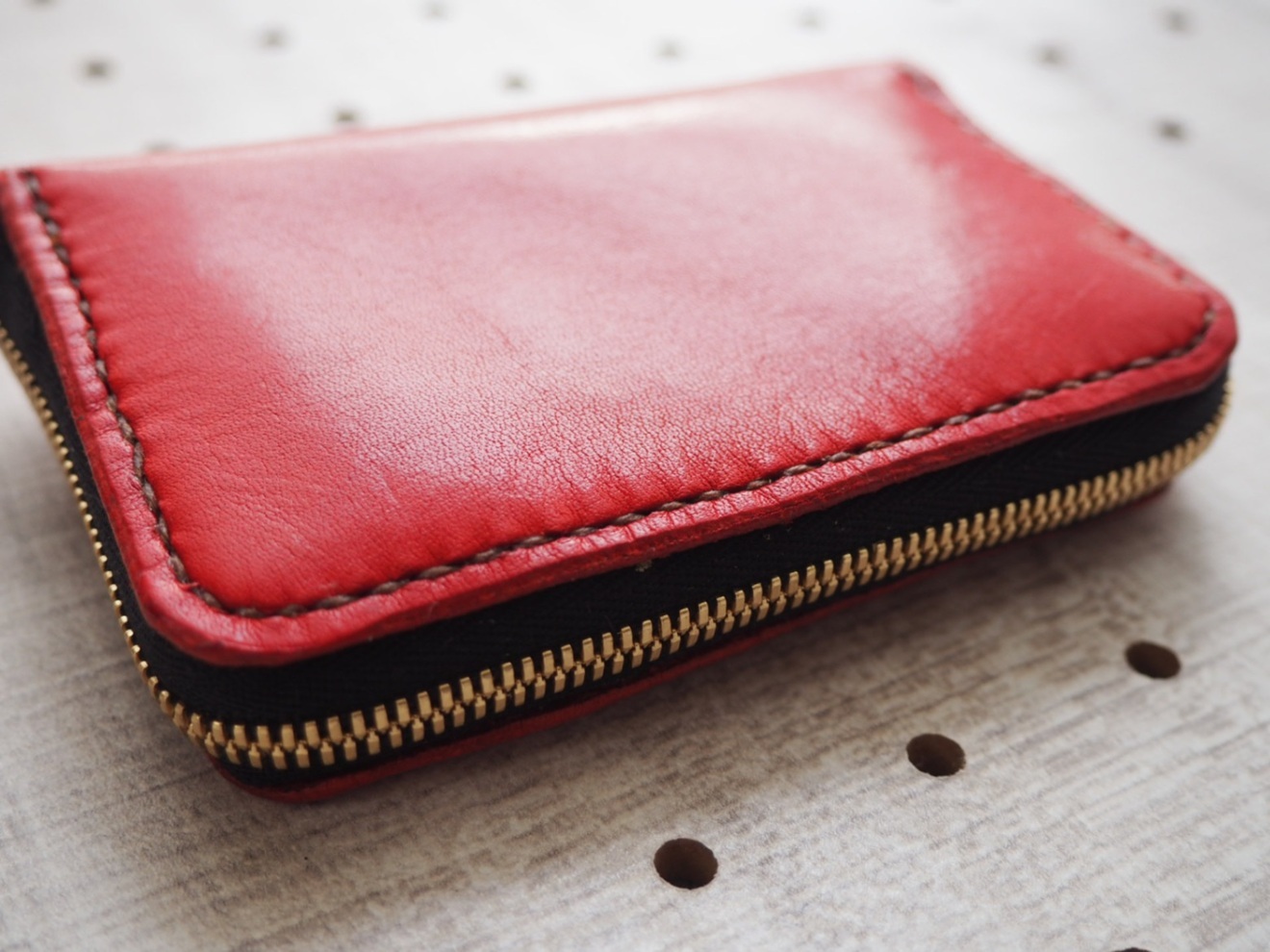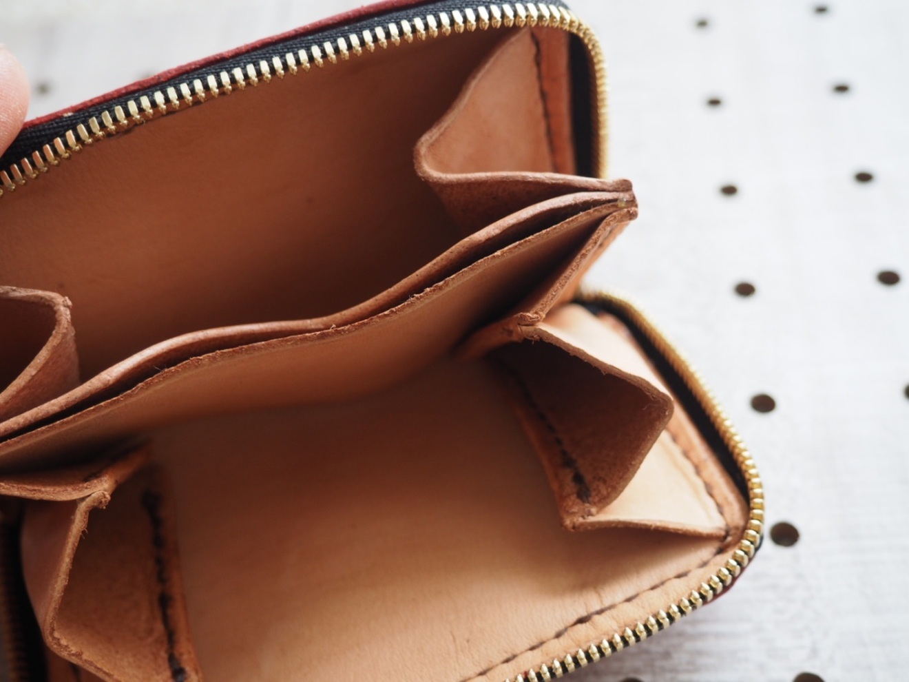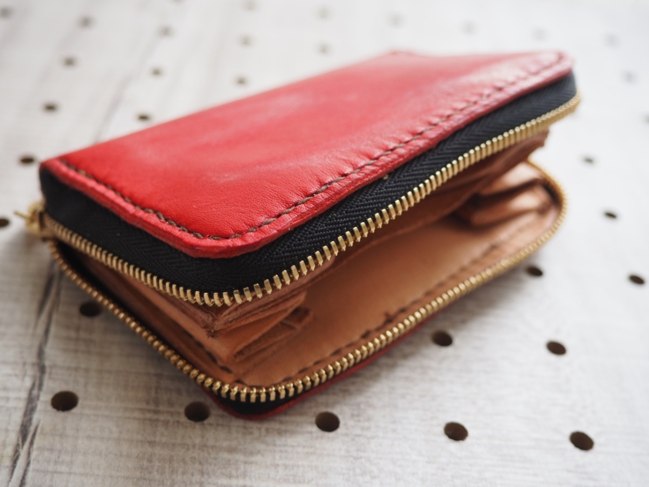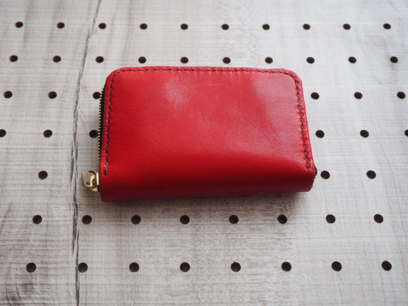 ミニラウンドファスナーウォレット 栃木レザー 小銭入れ 赤 カード入れ付き