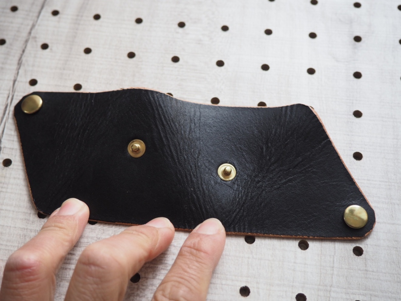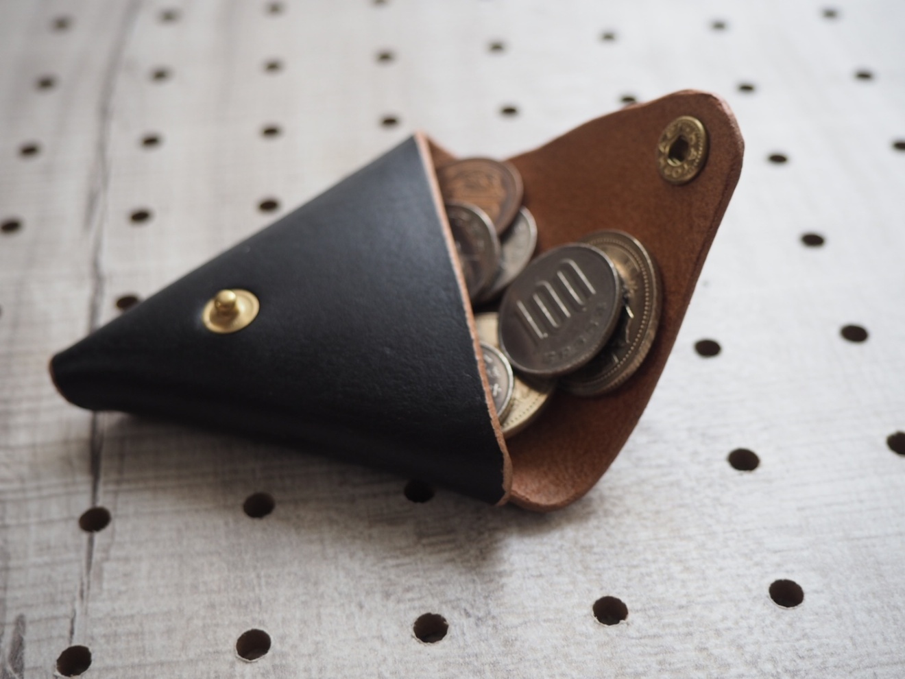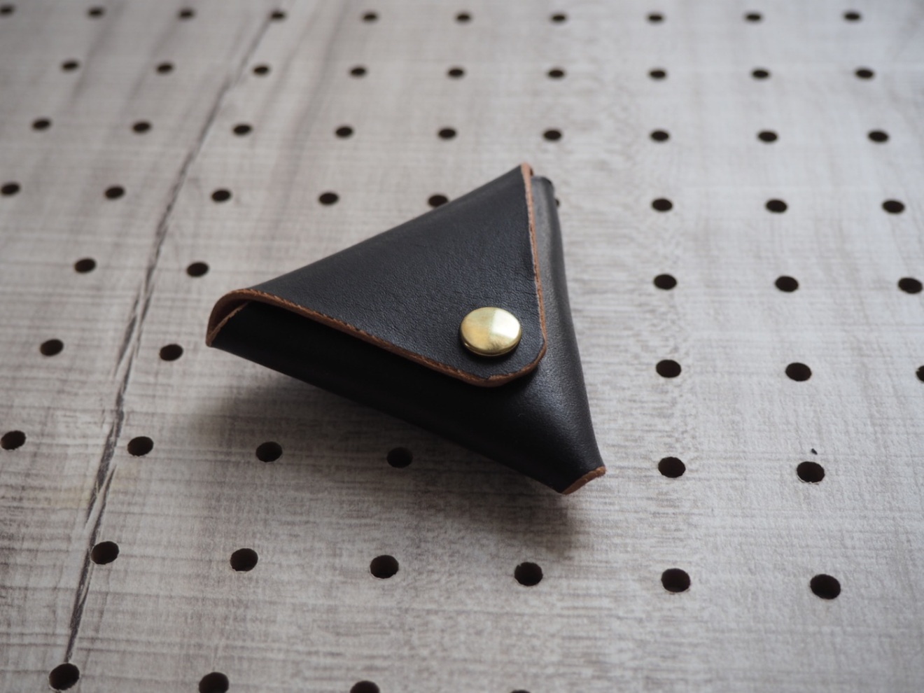 高品質なレザー製の三角形コインケース、スナップボタン付き。