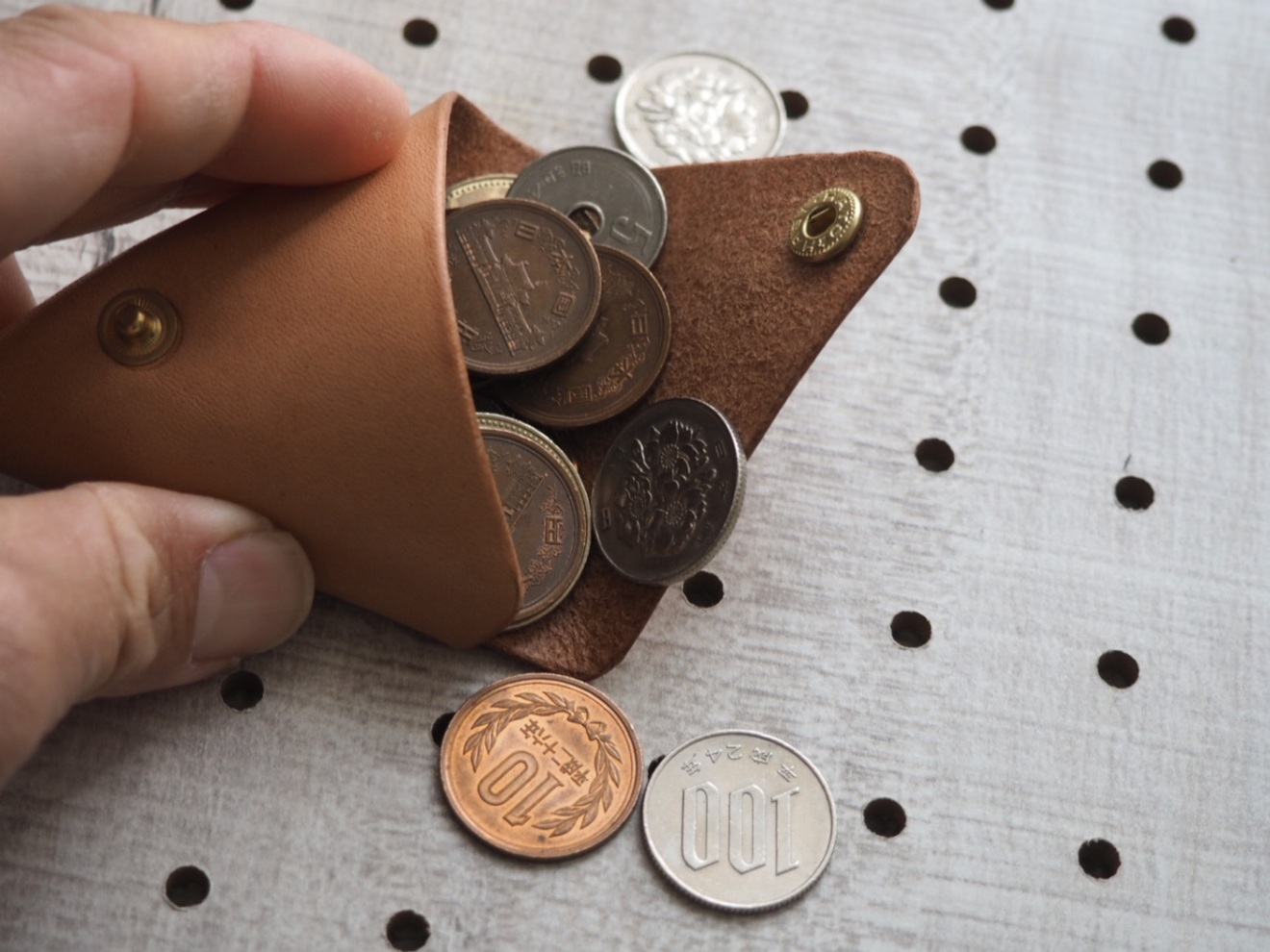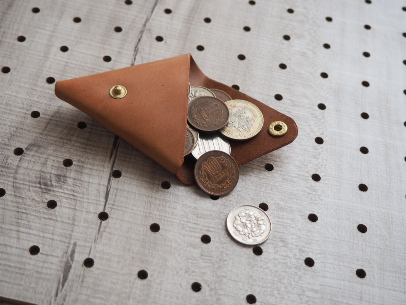 【ハンドメイド】三角コインケース ブラウン