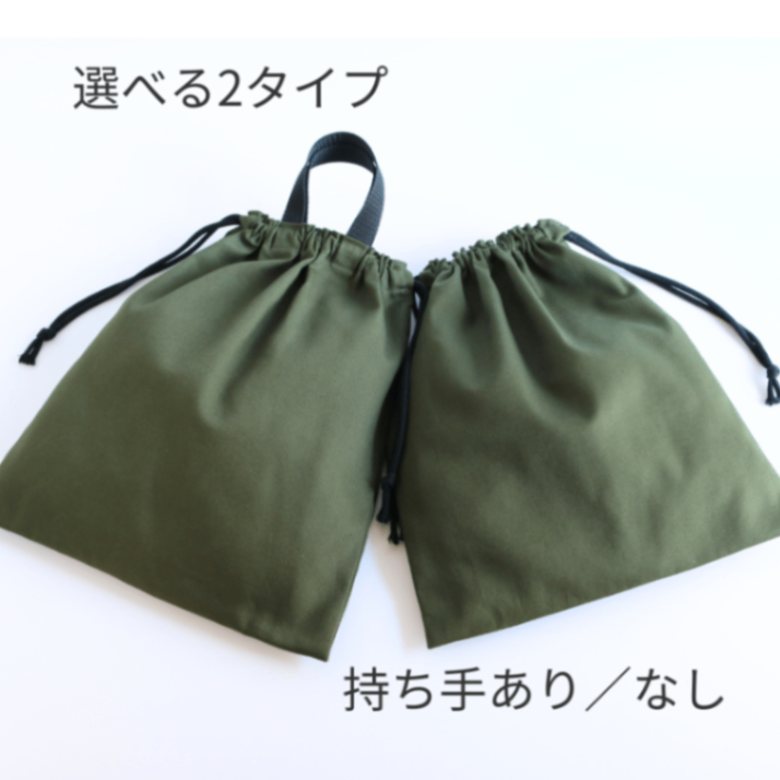 乾きやすい一枚仕立て|カーキ|巾着袋M(上履き・スリッパ入れ)|高学年も使える北欧アースカラー