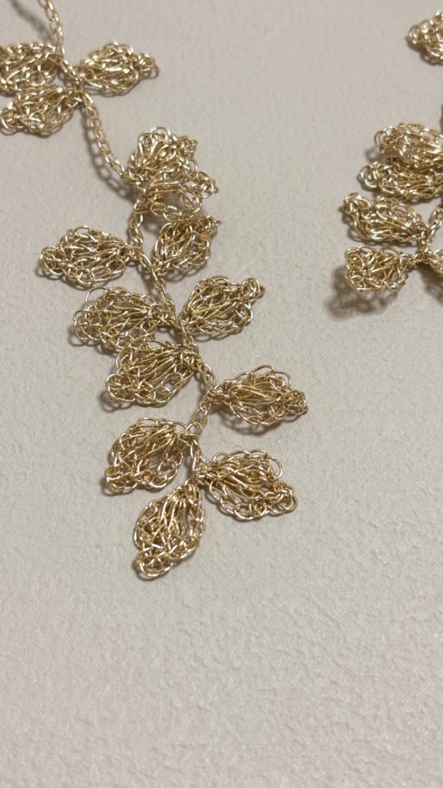 あたかも」という、金属のような光沢があるラメコード糸(レーヨン73%、ナイロン14%、分類外繊維(和紙)13%)を使用しています。