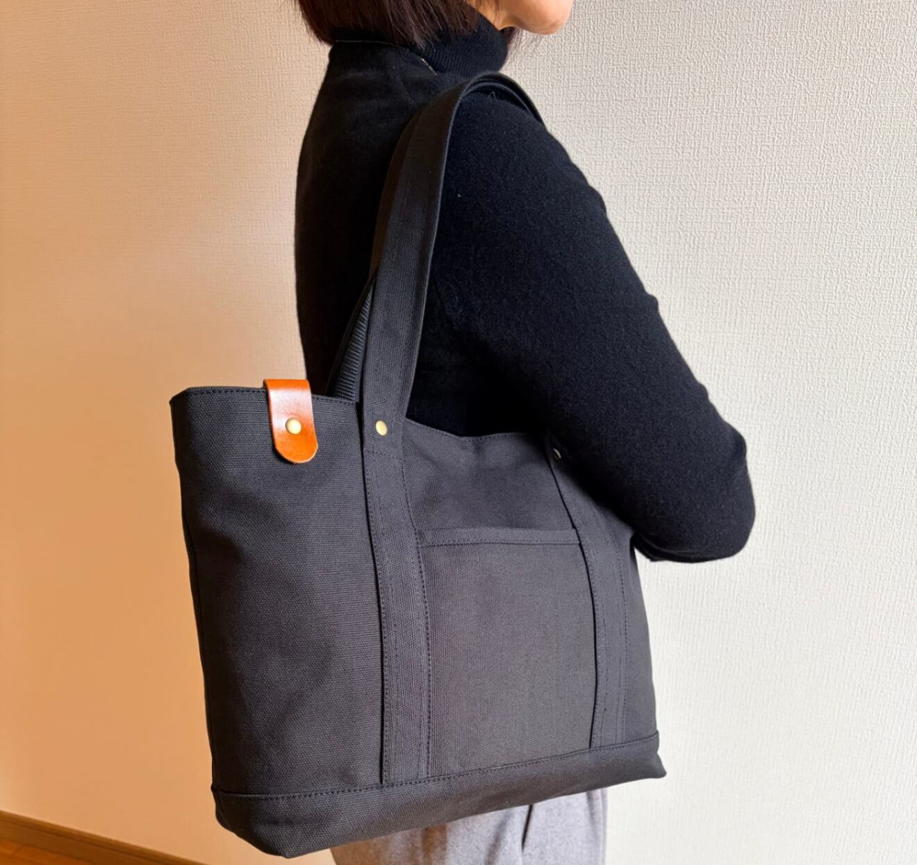 しっかりとした帆布生地で作った、シンプルで使いやすいトートバッグです。