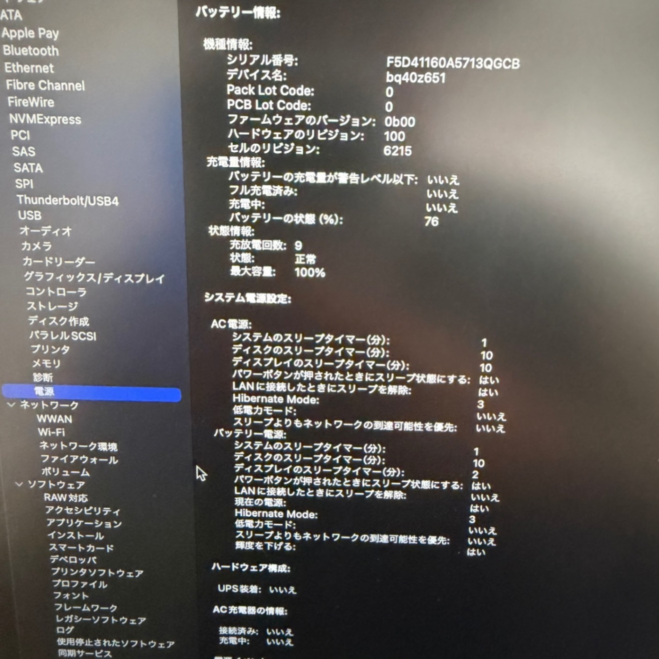 ・バッテリー:100%