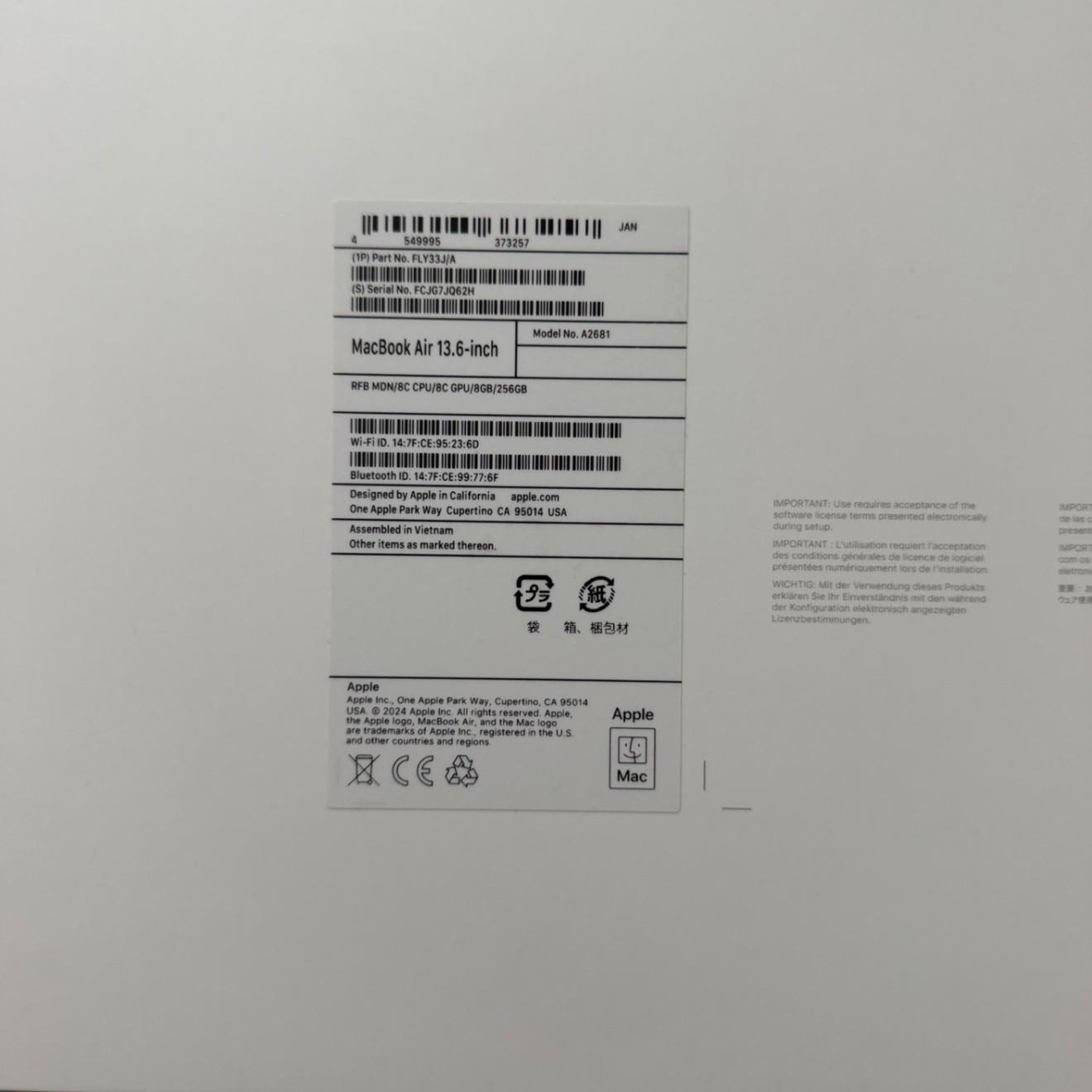 ・外箱・書類一式