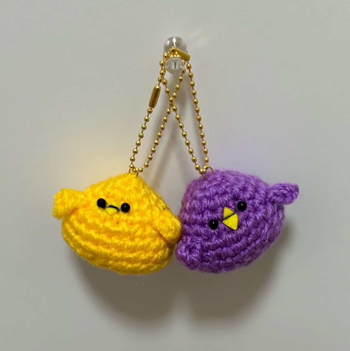 【ハンドメイド・2羽セット】小さなヒヨコのかぎ針編みマスコット 黄色・紫色