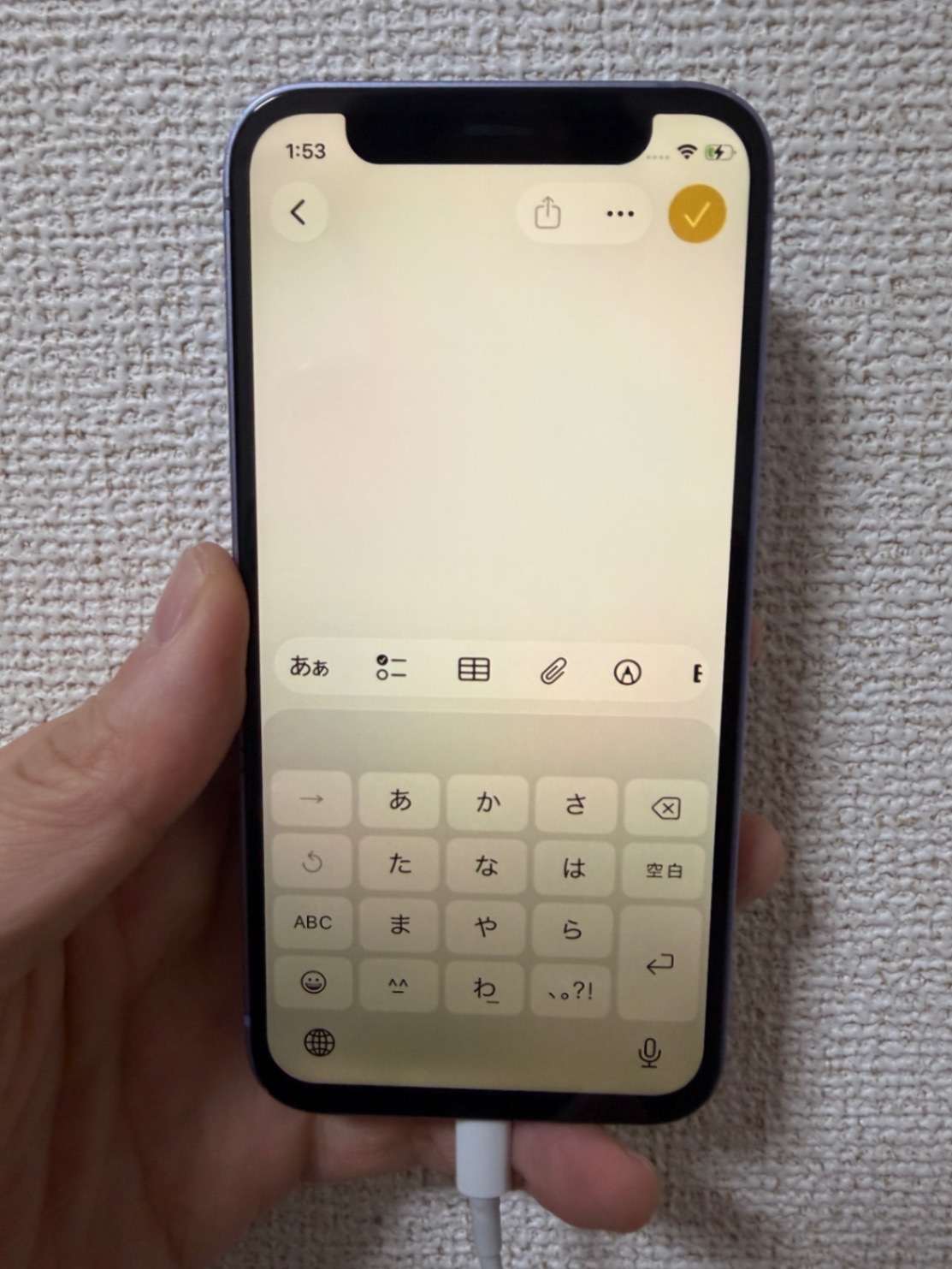 白一色の画面(メモ帳やSafariの白背景など)を表示した状態の写真を