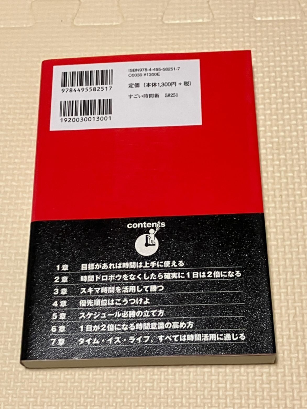 ・目標設定、時間ドロボウ(ダラダラ残業・ムダな会議・スマホ依存など)の排除、スキマ時間の活用、優先順位付け、スケジューリングといった具体的テクニックを章立てで解説している。