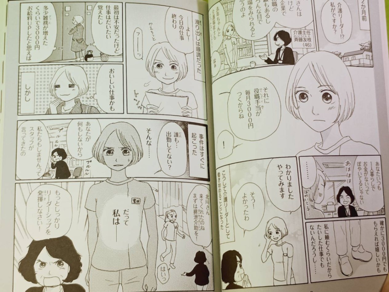 介護リーダーの役割とリーダーシップをマンガと解説した「マンガでわかる 介護リーダーのしごと」です。