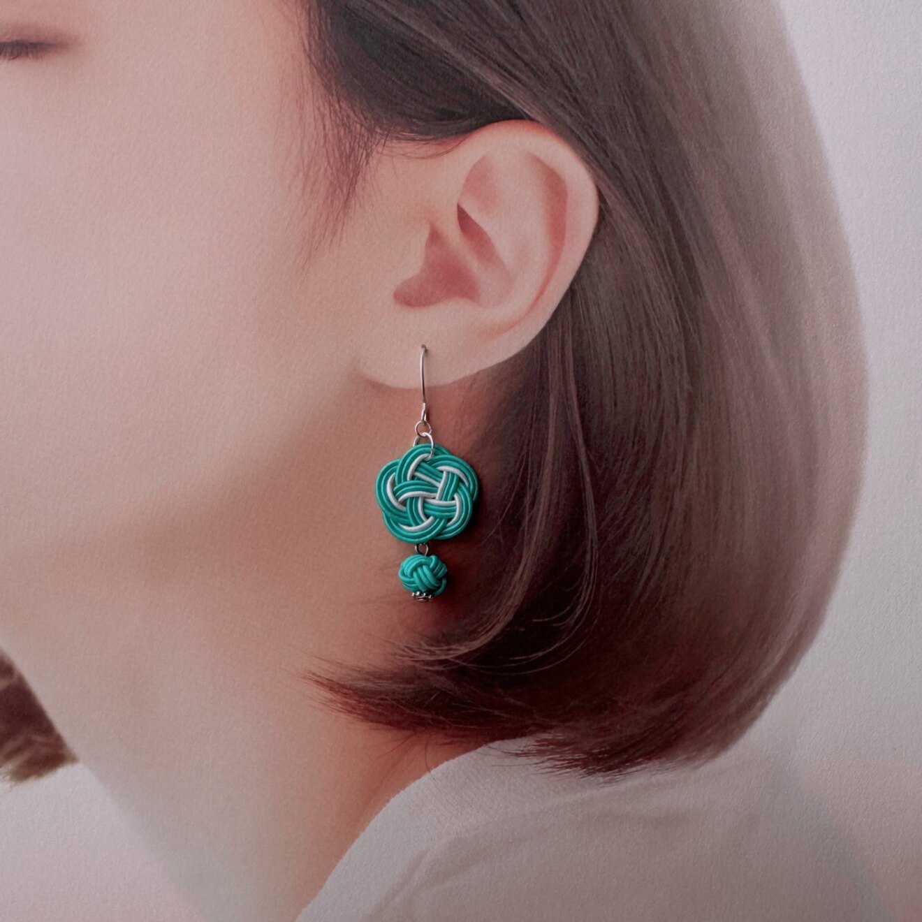 【ミントグリーン】軽い!痛くない!水引梅結びと玉結びのピアス・イヤリング