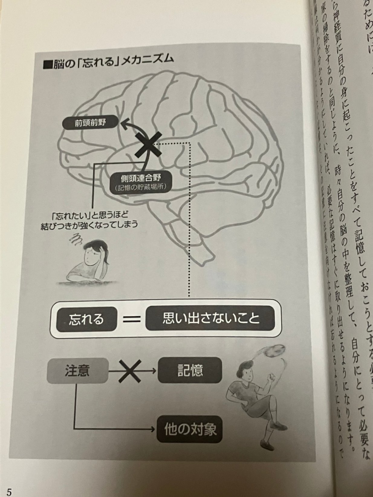 ・脳科学の観点から、記憶を保持することより「忘れる」ことが現代社会で重要であり、過去の失敗や執着を手放すことで脳に余白を生み、新しい挑戦や幸福を受け入れる余裕を作ると解説。