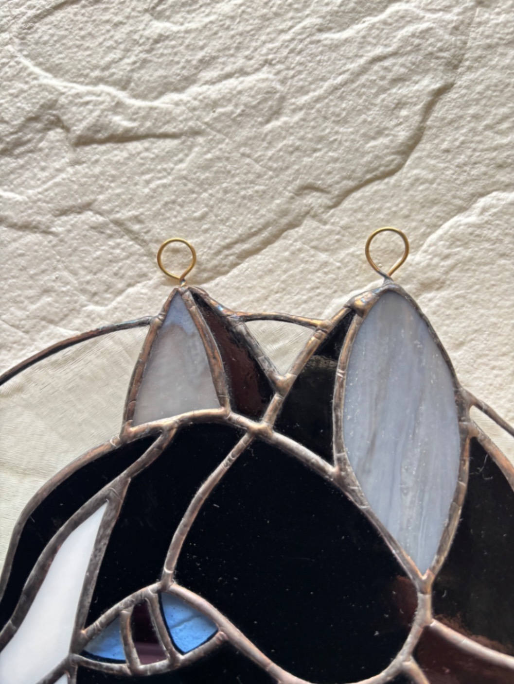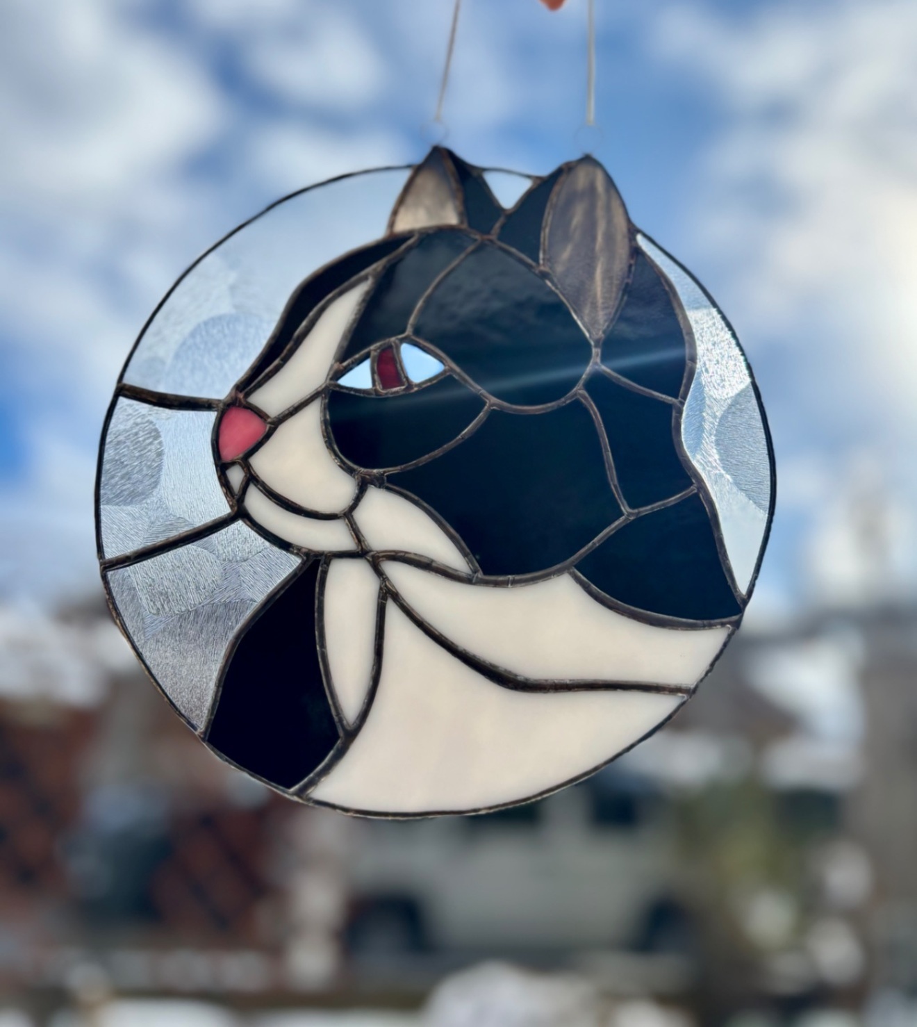 ステンドグラスで作ったハチワレ猫のパネルです