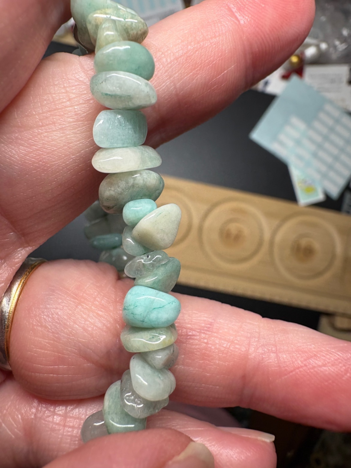 こちら天然石のさざれを利用してブレスレットになりました。