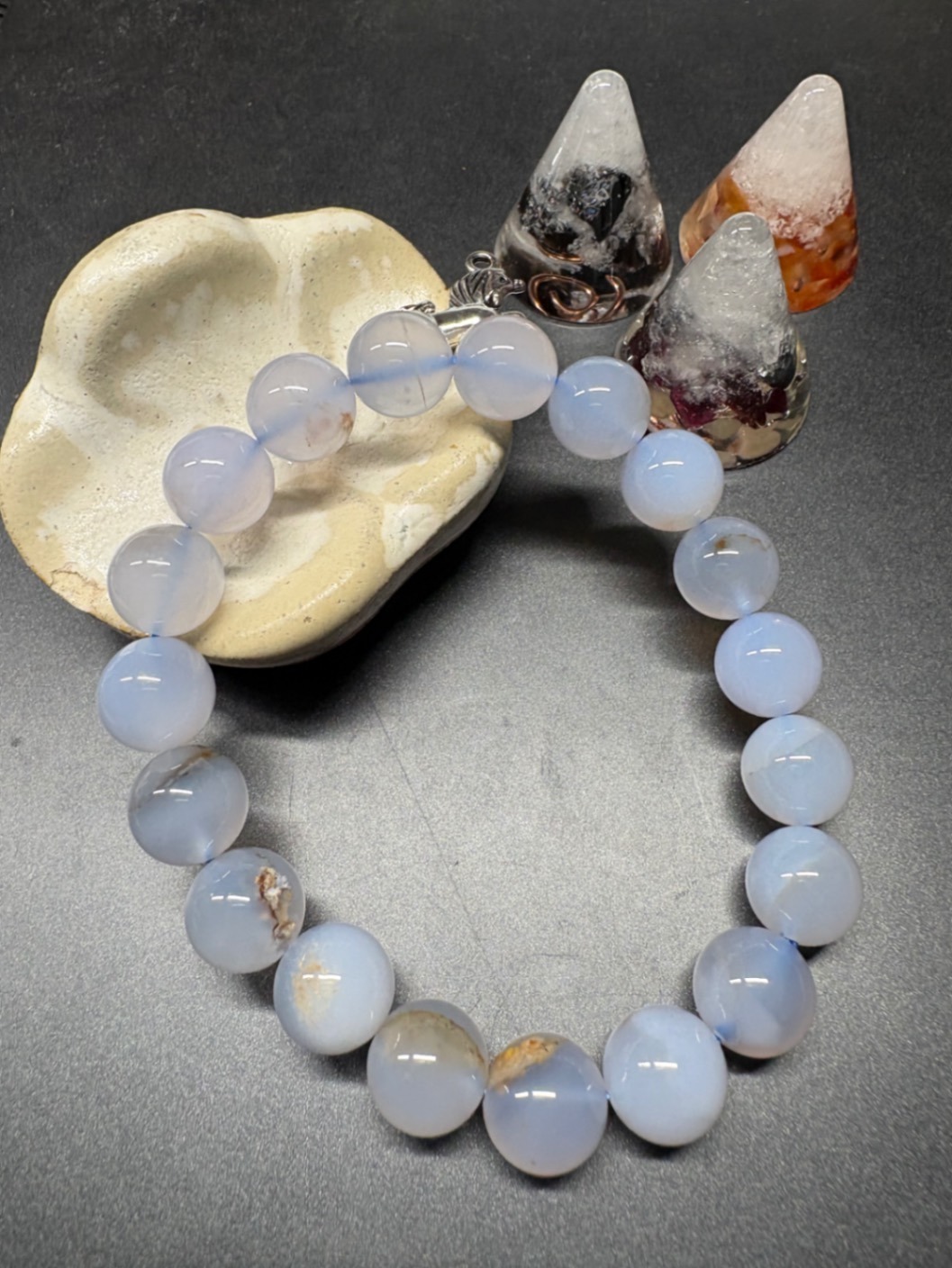天然石 パワーストーン ブレスレット カルセドニー9~10㎜ 汚れあり 3008
