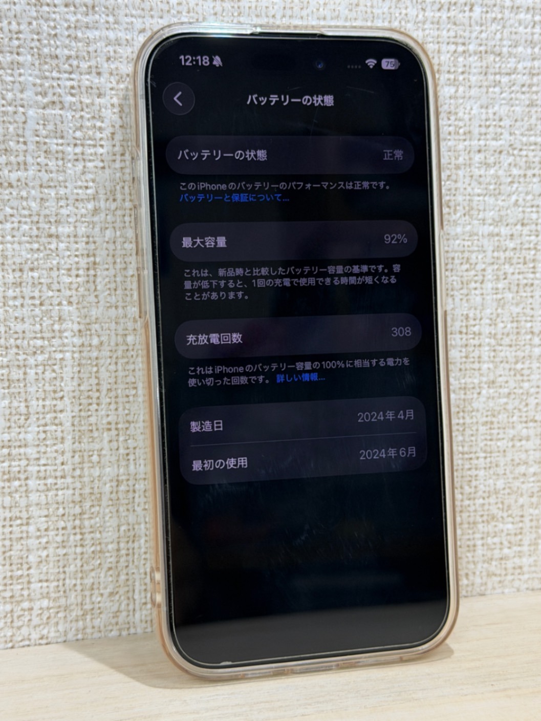 iPhone 15 Pro 128GB ホワイトチタニウムSIMフリー 中古品 BT容量92%