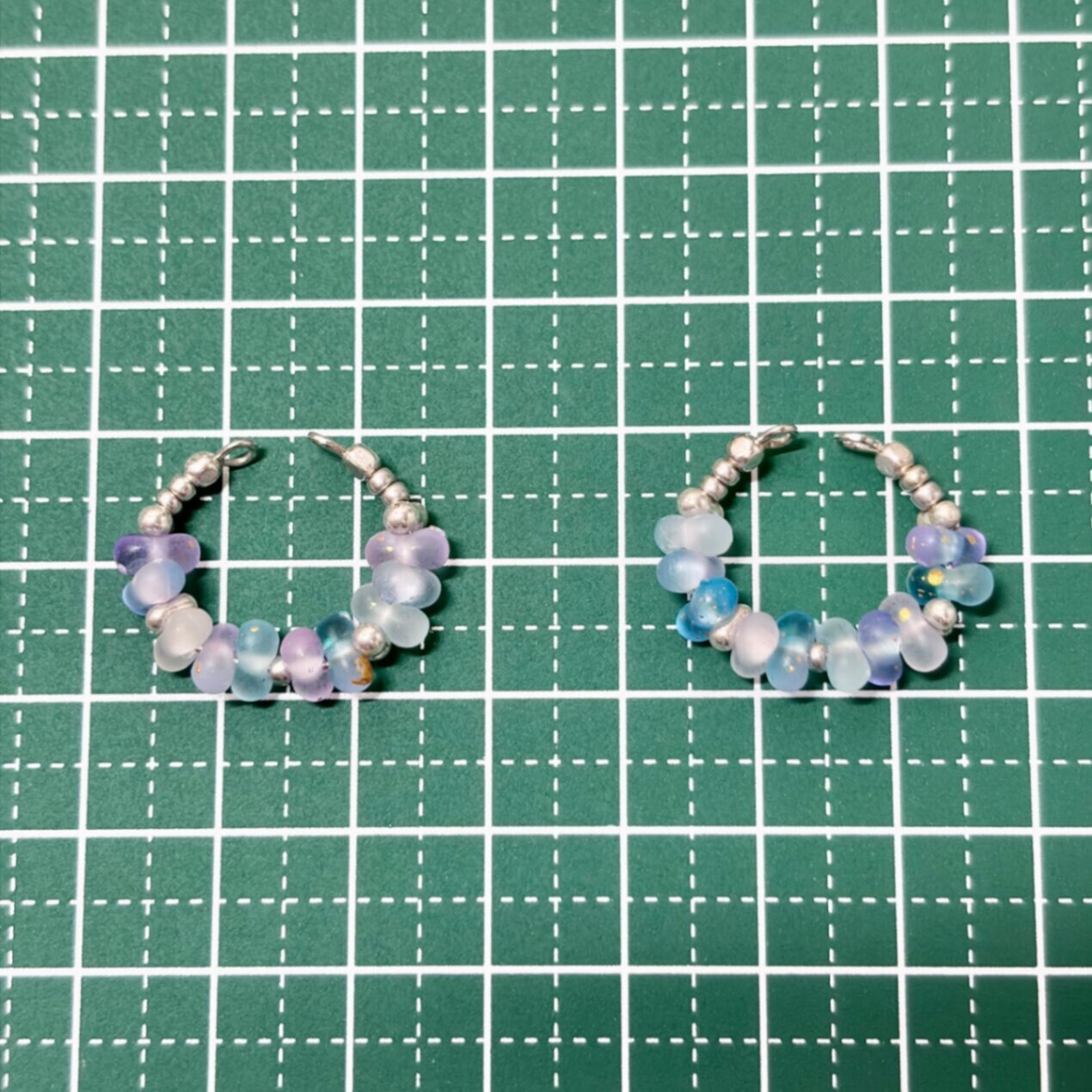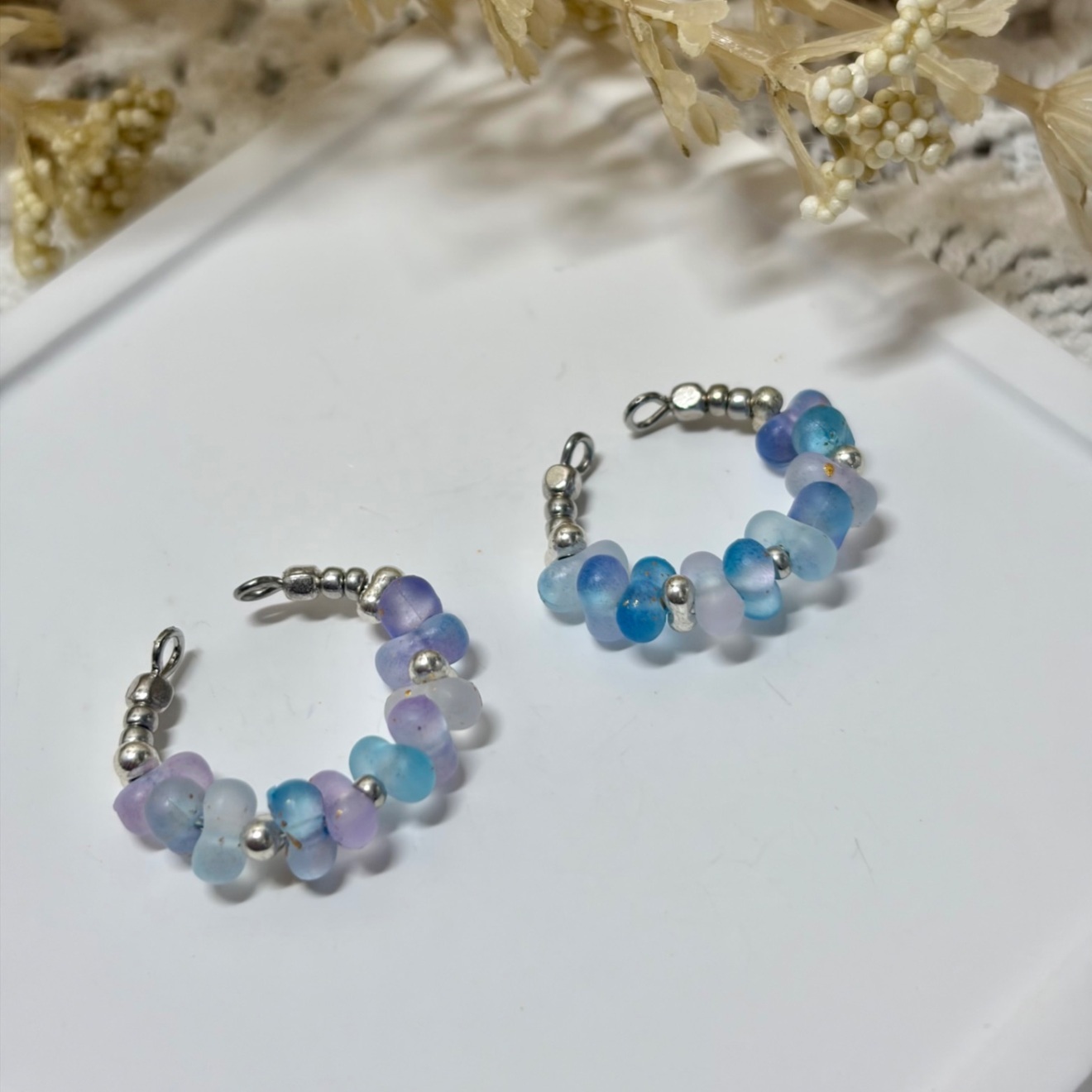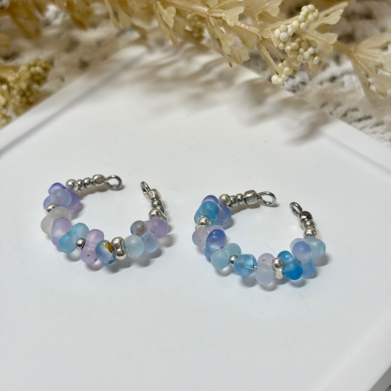 ピアス穴不要:すりガラス風 ビーズイヤーカフ ❄️ 幻想的なブルー&パープル