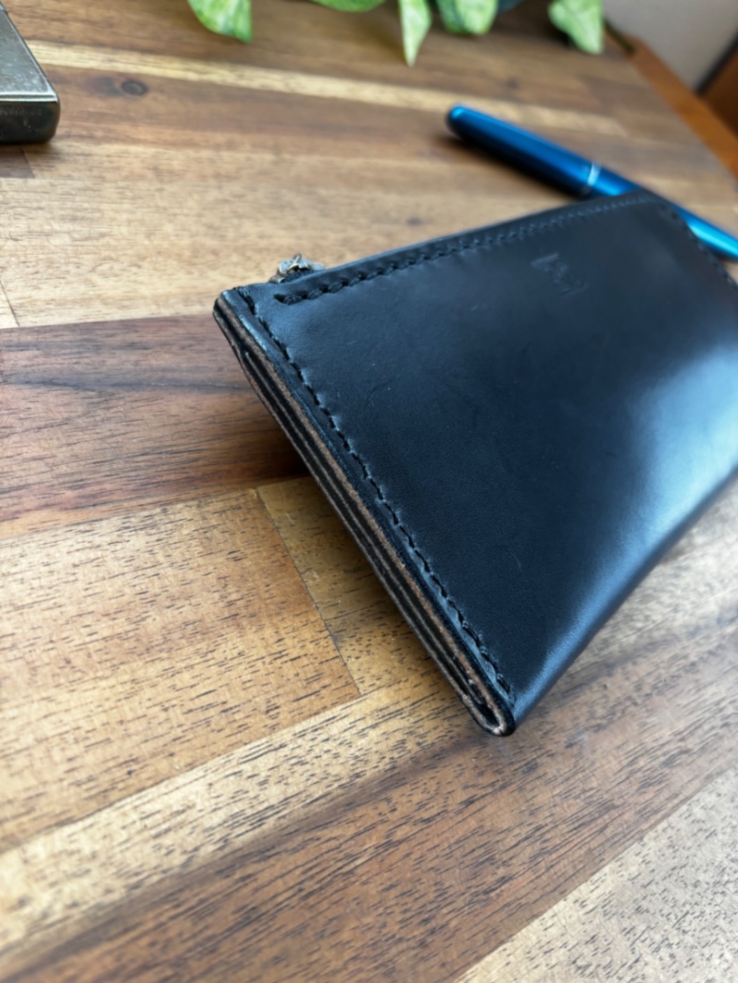 マチ無しですが、そこにはしっかりとした革の重なった重厚な貼り合わせ部分を