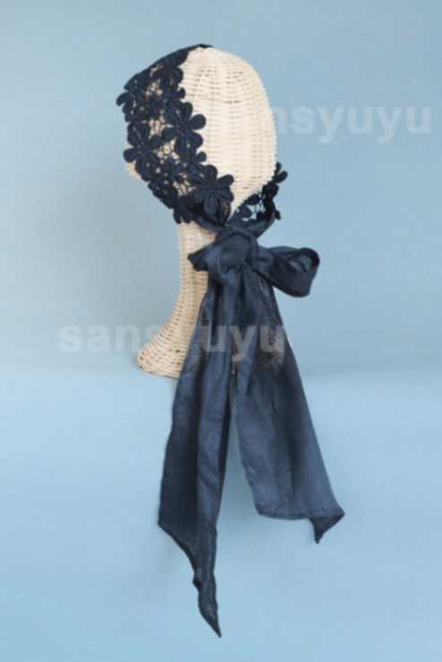 花刺繍モチーフレースとリネンのヘッドドレス