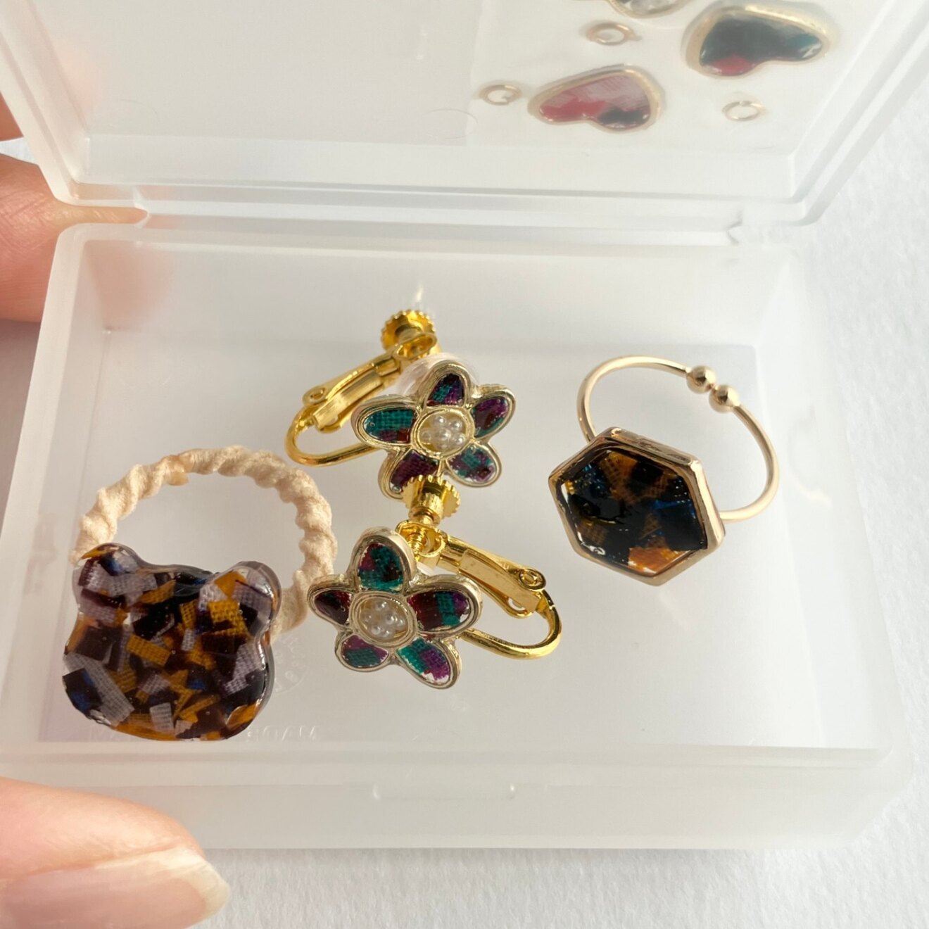 ・素材:アフリカ布、レジン、金属、ポリプロピレン(小物ケース)