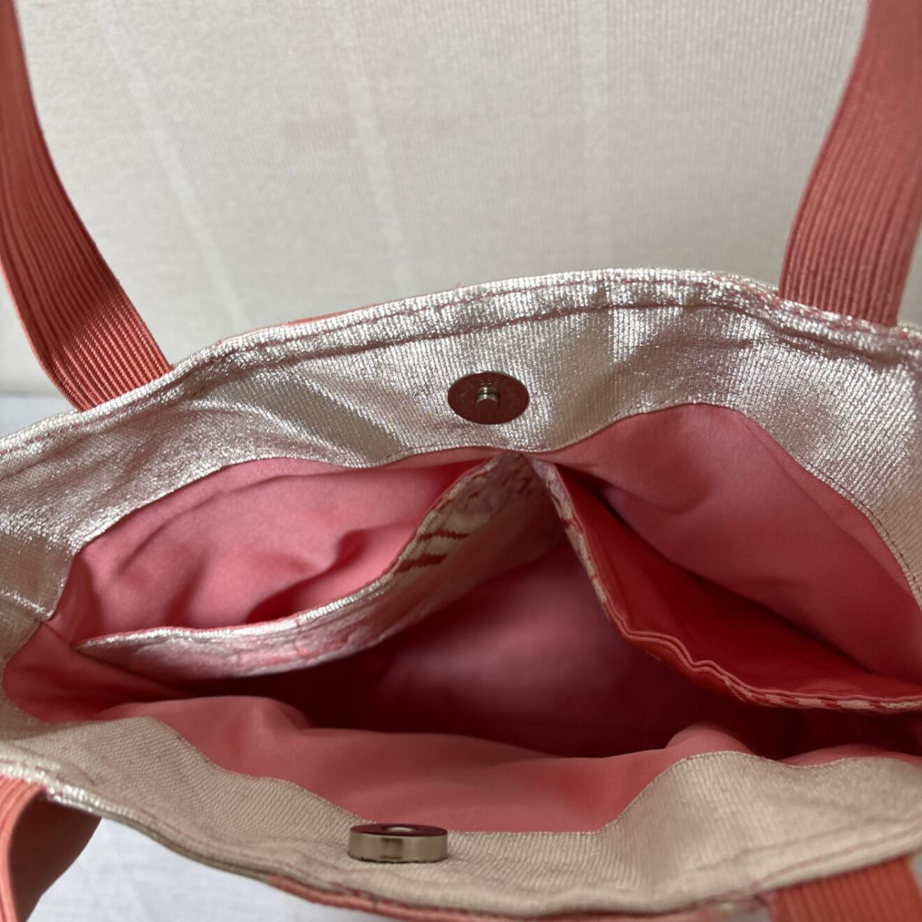 内側はやさしいピンクの裏地付き。