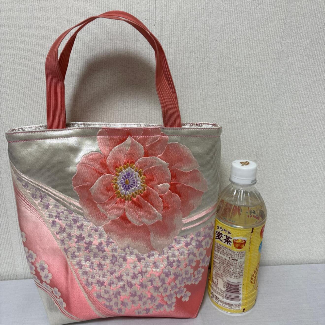 帯リメイク トートバッグ 花柄 ピンク 和装にも◎ ハンドメイド