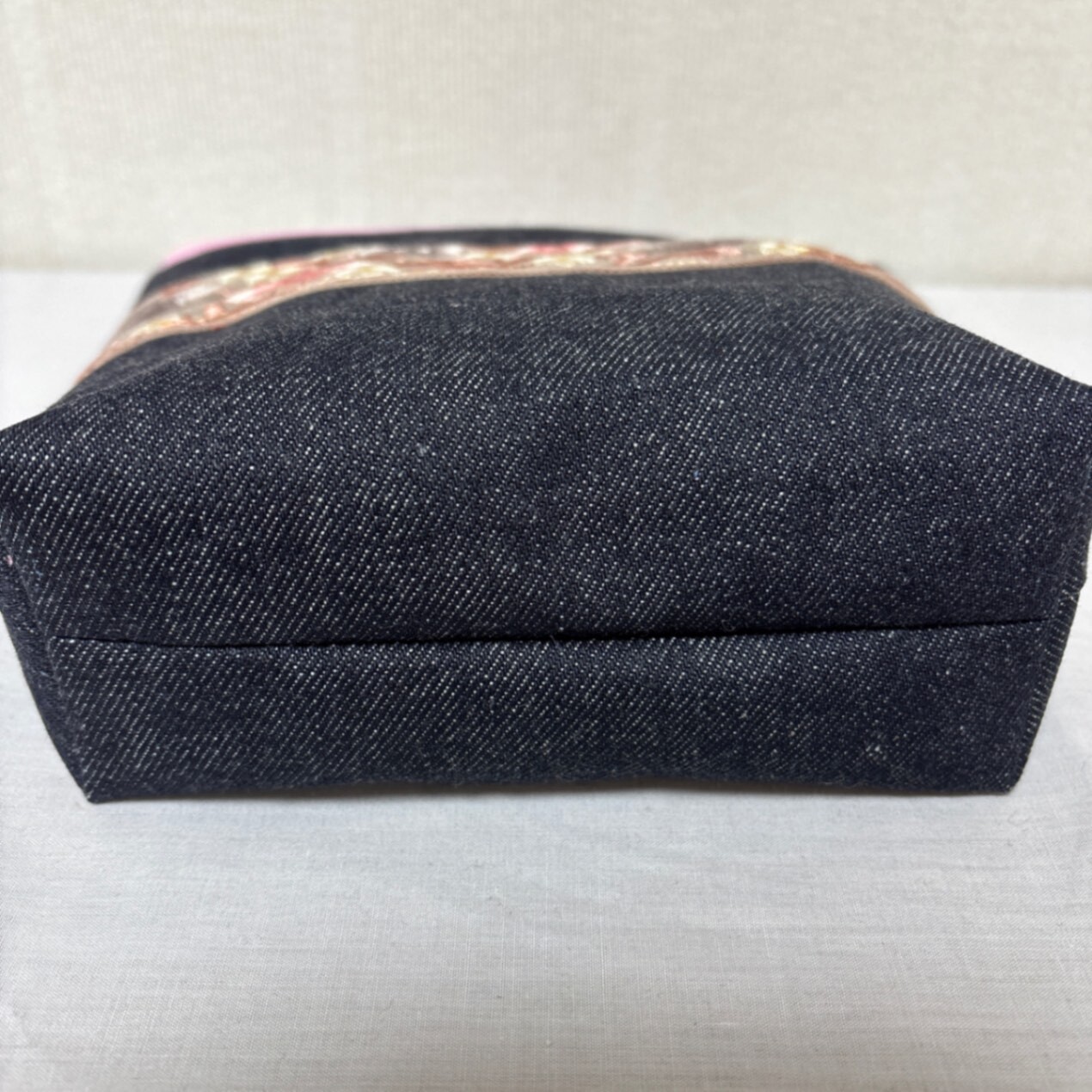 【ハンドメイド】デニム × インド刺繍リボン ポーチ 大人可愛い / 一点物