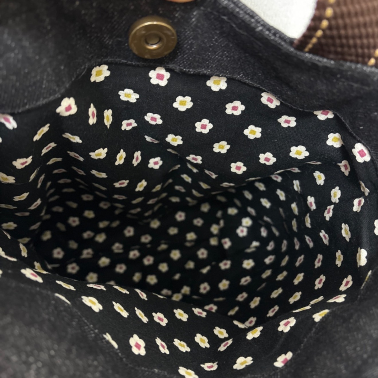 内布には落ち着いた花柄の生地を使用し、