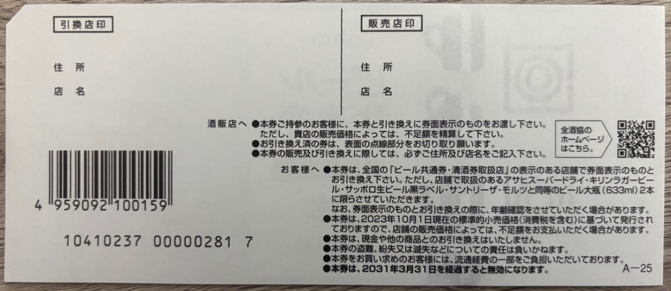 ビール共通券 びん 633ml 2本 4枚セット