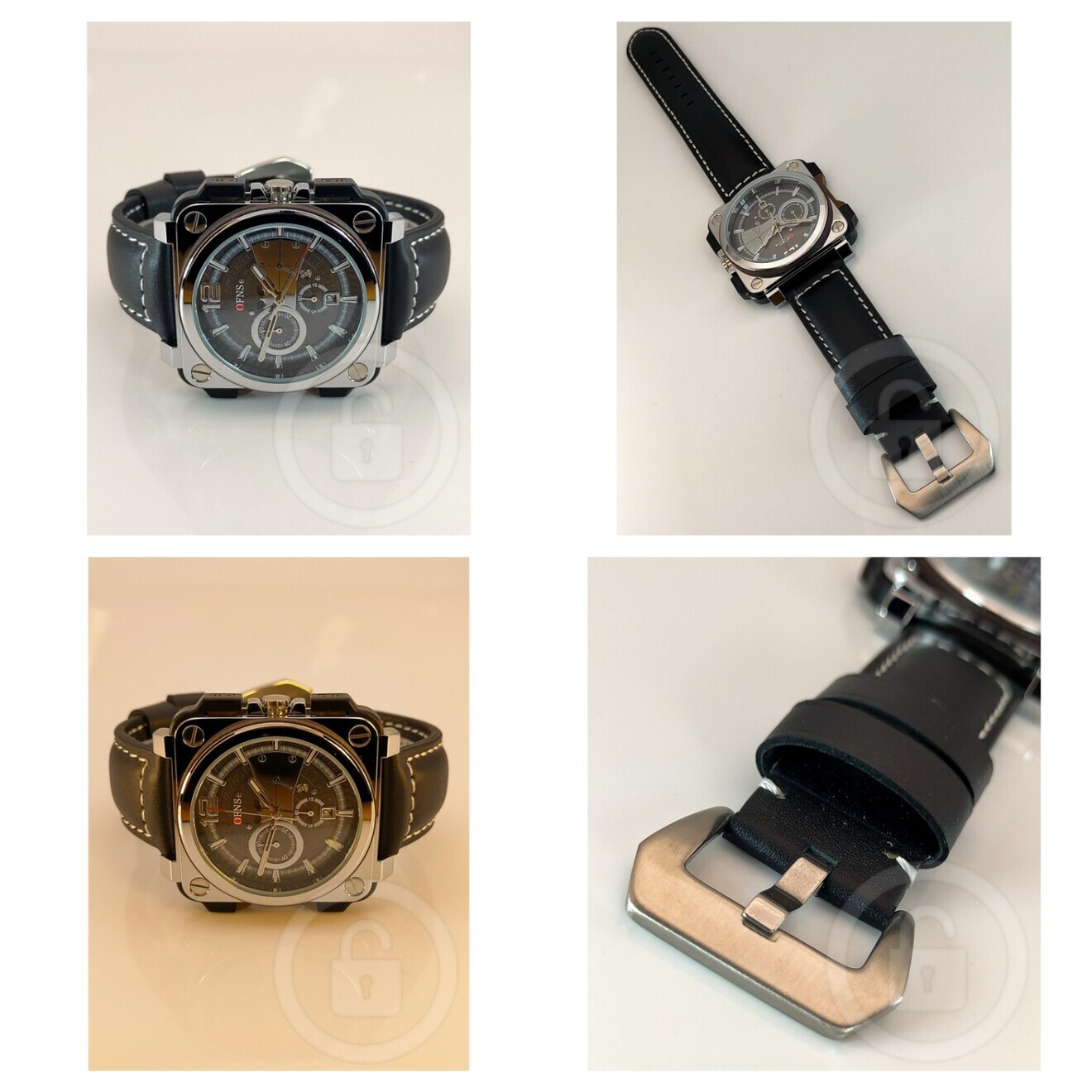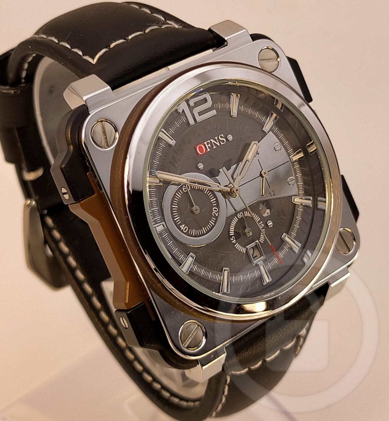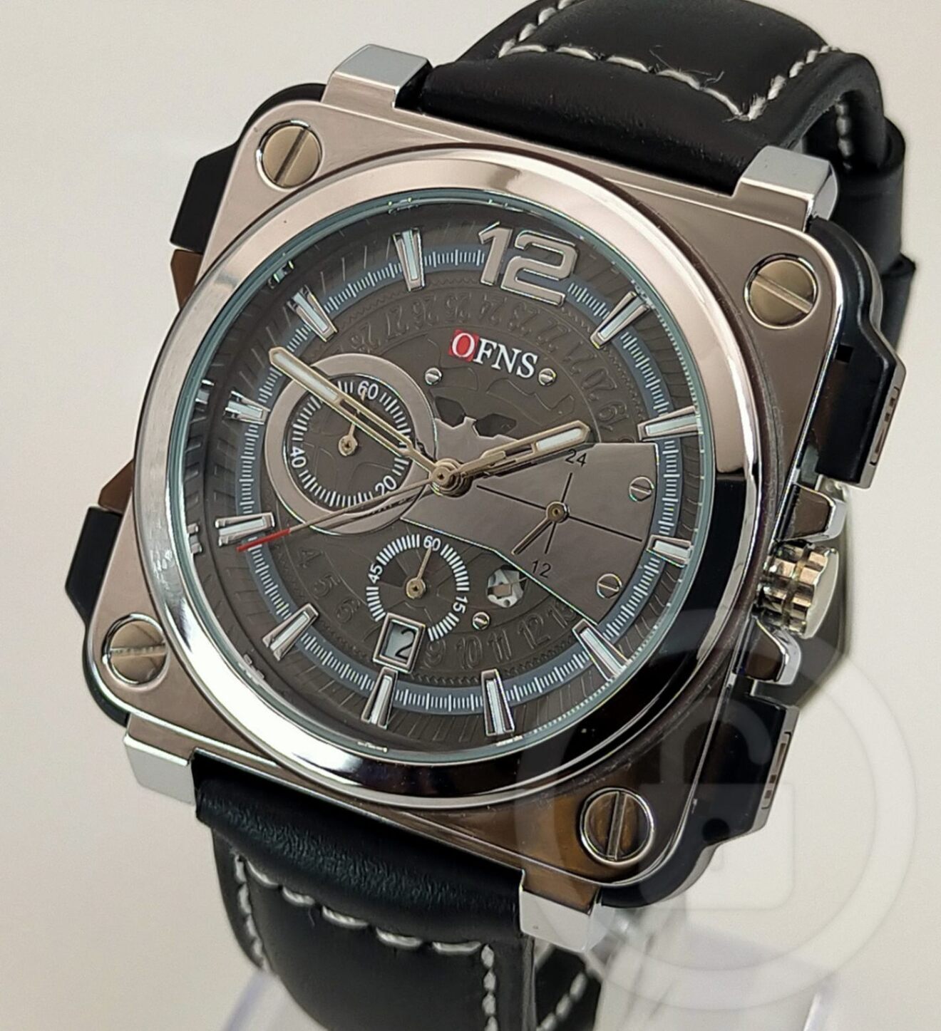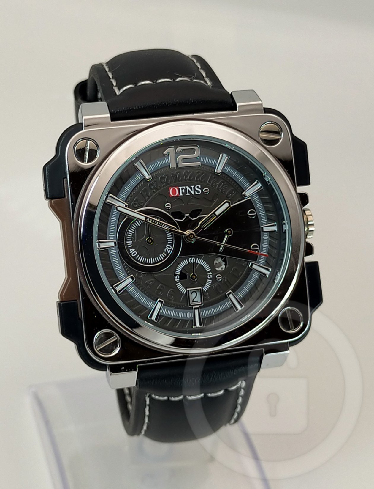 唯一無二の圧倒的インパクト【スクエアアビエイター/新品】クロノグラフ 日付 黒革/タングバックル