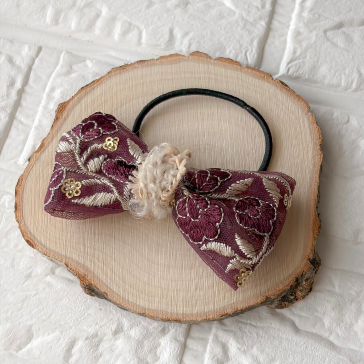 ⑪インド刺繍リボン🎀ヘアゴム パープル クリーム
